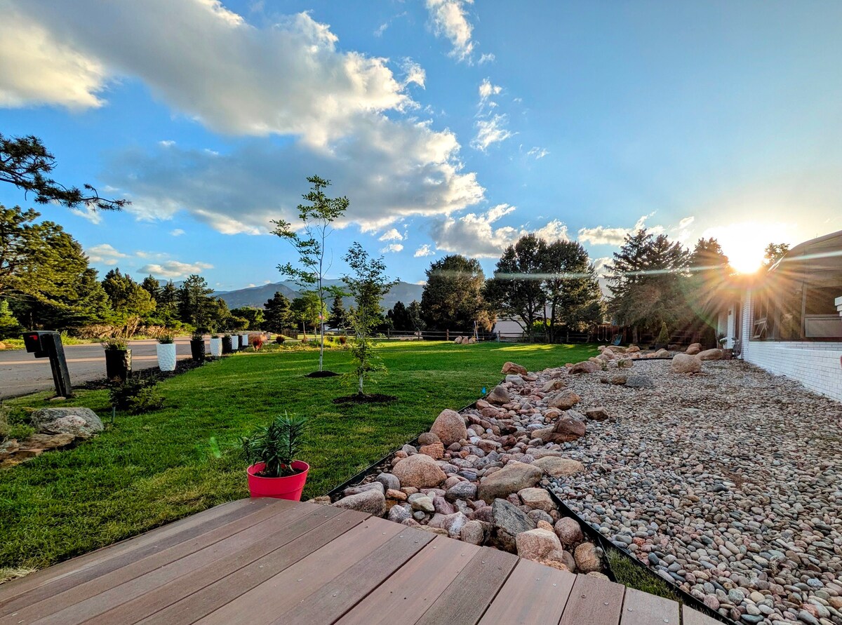 ☞ Walk Score 85 (Walk to Creekwalk shopping center, cafes, dining, etc.) ☞ Pet friendly (fenced in side-yard!) + views of Pikes Peak ☞ 50" Smart TV ☞ Primary King Bedroom ☞ Pull out sofa in livingroom (full size). Chair in Office Converts to Twin Sleeper ☞ Fast wifi & Private workspace 5 mins → Broadmoor Hotel 7 mins → Downtown Colorado Springs/Colorado College 10 mins → Hiking trails at Cheyenne Canyon 15 mins → Garden of the Gods / Manitou Springs / USAFA 20 mins →Colorado Springs Airport ✈