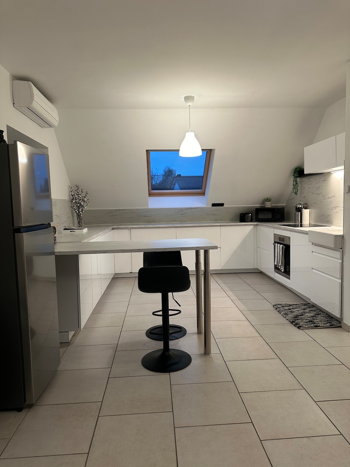 आकर्षक और गर्म अपार्टमेंट को 2 स्तरों पर पूरी तरह से पुनर्निर्मित किया गया है। बहुत ही चमकीला अपार्टमेंट शहर के केंद्र में एक घर की पहली मंजिल पर स्थित है, जो बड़े वर्ग से 300 मीटर से भी कम दूरी पर एक शांत सड़क पर है। पहले स्तर पर, लिविंग रूम और पूरी तरह से सुसज्जित अमेरिकी किचन। दूसरा स्तर डबल बेड वाले एक विशाल बेडरूम, शावर और शौचालय वाला बाथरूम और शहर की छतों को देखने वाली एक निजी छत तक पहुँचता है। आस - पास सशुल्क पार्किंग