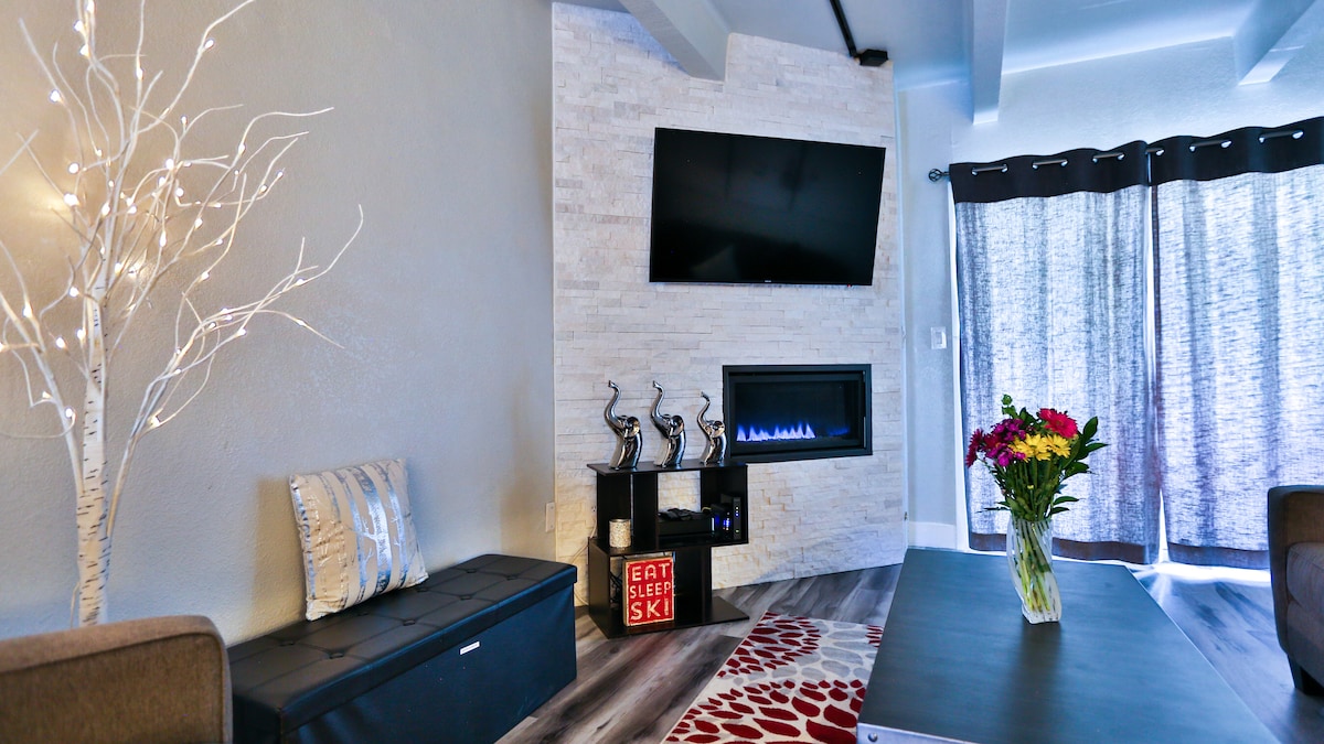Modern condo near 4 world class ski resorts just steps away from the vibrant Frisco downtown. Includes powerful wifi, smart TVs & free parking. Enjoy access to indoor pool, hot tub & dry sauna. We offer personal guest attention (we are not a prop. mgmt. co.), & well equipped kitchen. Cozy up to the fireplace or sit out on the balcony & enjoy your morning coffee. Free shuttle takes you to Copper or Breck. ski resorts. Check out reviews to see what others' are saying.