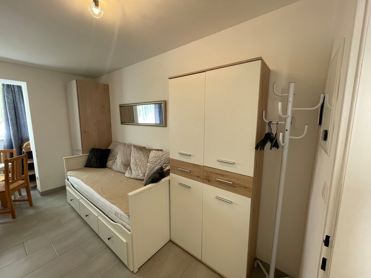 हॉर्न के बीचों-बीच मौजूद आपके अस्थायी घर में आपका स्वागत है 🌿 हमारा उज्ज्वल, प्यार से सजाया गया अपार्टमेंट कपल, छोटे परिवारों या पेशेवर मेहमानों के लिए आदर्श है, जो थोड़ी ज़्यादा जगह की सराहना करते हैं। यहाँ एक अलग डबल बेडरूम के साथ-साथ लिविंग एरिया में एक आरामदायक सोफ़ा बेड भी है – यहाँ 3 लोगों के ठहरने की सहूलियत है। सभी सुविधाओं से लैस किचन, आधुनिक बाथरूम और आरामदायक लिविंग स्पेस आपको आराम करने के लिए आमंत्रित करते हैं – चाहे आपका ठहरने का समय वीकेंड हो या उससे ज़्यादा।