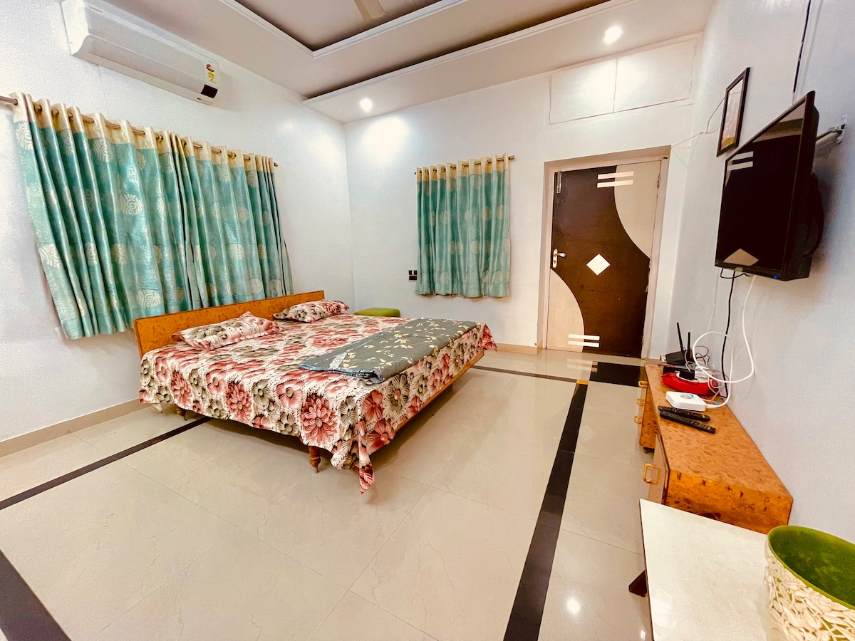 Beautiful, Spacious room (190 sqft) with large and modern attached washroom on the first floor in a peaceful society premises. We also provide usage of 2 big patio area. Perfect for you to spend evening time for talks and dinner. Both area can be accessible from your room. We provide various unique amenities which are rare to find (kinda unheard of as per me). We already talked about patio. We also give Netflix, Prime, Hotstar on TV. Quick resolution for any issue. We've love to host you.