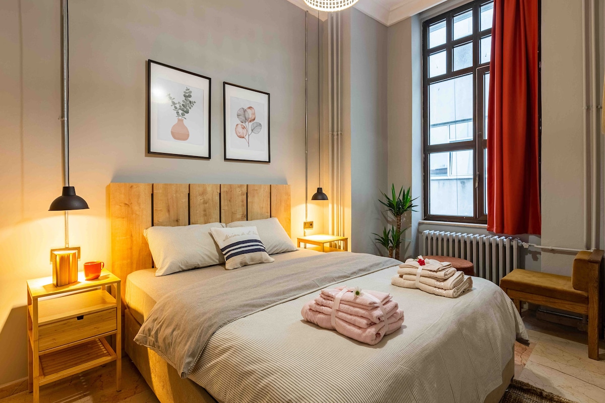 Welcome to our elegant studio in trendy Cihangir, one of Istanbul’s most sought-after neighborhoods. The apartment offers a bright and cozy living space, stylish décor, and a comfortable bed, perfect for couples or solo travelers. Step outside and you’ll find yourself surrounded by charming cafes, art galleries, and boutique shops. Taksim, Galata, and the Bosphorus are all within easy walking distance, making this the ideal base for exploring the city.”..