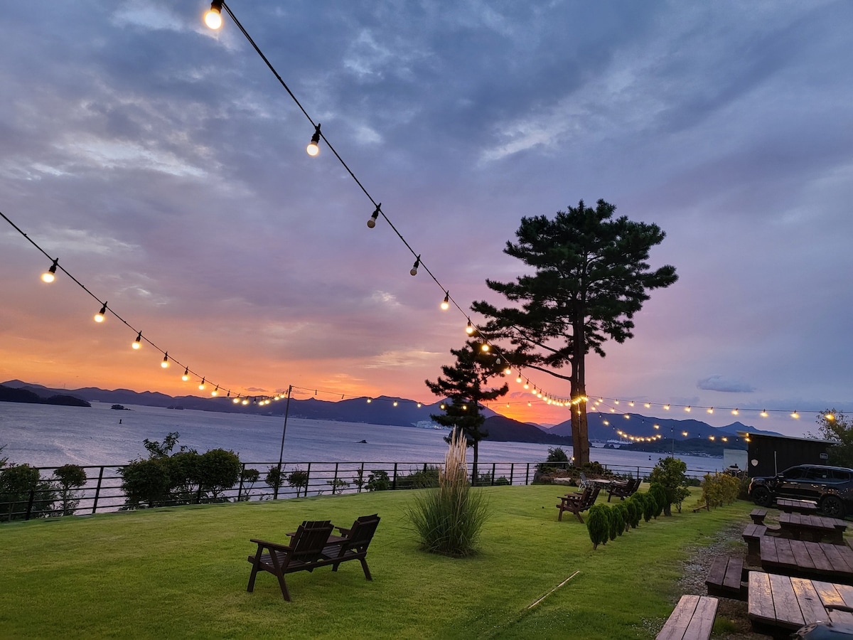 * Geoje Blue Sky * ओशन व्यू और माउंटेन व्यू कॉटेज पूरी पहली और दूसरी मंज़िल का लार्ज गार्डन, फ़ायर पिट, कॉल्ड्रॉन, बारबेक्यू वगैरह।