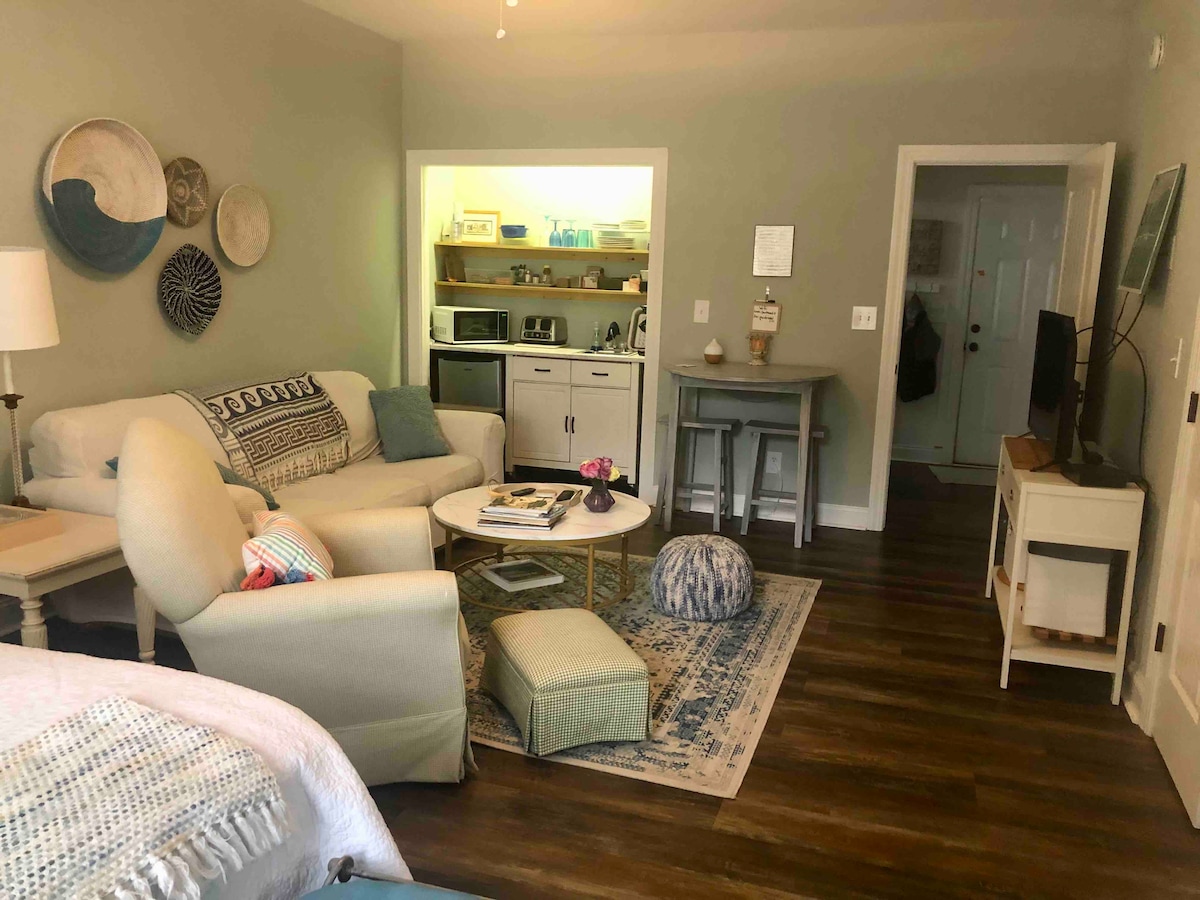 ऐतिहासिक जॉर्जटाउन, SC के बीचों - बीच मौजूद 200 साल पुरानी प्रॉपर्टी के इस आकर्षक 1 बेडरूम वाले गेस्ट कॉटेज में समय के साथ आगे बढ़ें। सुंदर गेट वाले आँगन में बगीचे के फव्वारे की शांतिपूर्ण आवाज़ सुनते हुए अपने मुफ़्त नाश्ते का आनंद लें... या समुद्र तट क्रूज़र पर शहर के चारों ओर सुबह की सवारी करें और मछली पकड़ने वाली नौकाओं को समुद्र में खींचते हुए देखें। खरीदारी, भोजन और इतिहास का स्वाद कोने के आसपास है। कृपया अपने अगले दिन को यादगार बनाने में हमारी मदद करें।