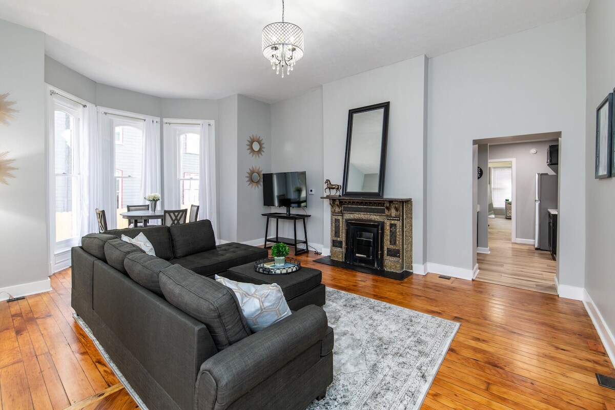 मैन ओ वॉर में आपका स्वागत है! मेन पर ऐतिहासिक घर के अंदर मौजूद 1500 वर्ग फ़ुट का लग्ज़री पहली मंज़िल का कॉन्डो। यह 2 - बेडरूम, 2 बाथ कॉन्डो एक ऐतिहासिक केंटकी घर के सुरुचिपूर्ण आकर्षण के साथ आधुनिक लक्ज़री और शैली का एक आदर्श मिश्रण प्रदान करता है। मूल रूप से 1872 में बनाया गया, हाउस ऑन मेन 4 इकाइयों के साथ एक आकर्षक बुटीक होटल संपत्ति के रूप में काम करता है: सचिवालय - पहली मंज़िल 2bed/2ba मैन ओ’ वॉर - पहली मंज़िल 2bed/2ba सर बार्टन - दूसरी मंज़िल 1bed/1ba (w/sleeper) वॉर एडमिरल - दूसरी मंज़िल 1bed/1ba (w/स्लीपर)