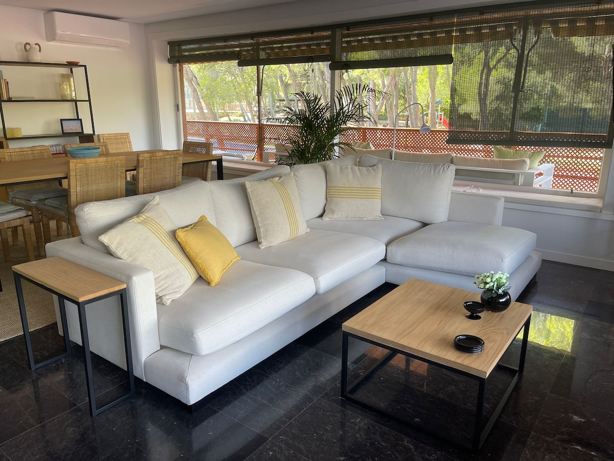 2 डबल बेडरूम वाला अपार्टमेंट, एक डबल और दो सिंगल बेड वाला एक, सोफ़ा - बेड वाला लिविंग रूम। बच्चों वाले जोड़ों या परिवारों के लिए बढ़िया। 2 और लोगों की क्षमता वाला एक अतिरिक्त स्टूडियो होने की संभावना है (किराए में शामिल नहीं है और इसे अलग से बुक किया जा सकता है)। निजी पूल। यह क्षेत्र आवासीय, मध्य और शांत है, केंद्र, दुकानों, सुपरमार्केट और रेस्तरां से 5 मिनट की पैदल दूरी पर है। मुख्य समुद्र तटों और कोव से 10 मिनट की पैदल दूरी पर।