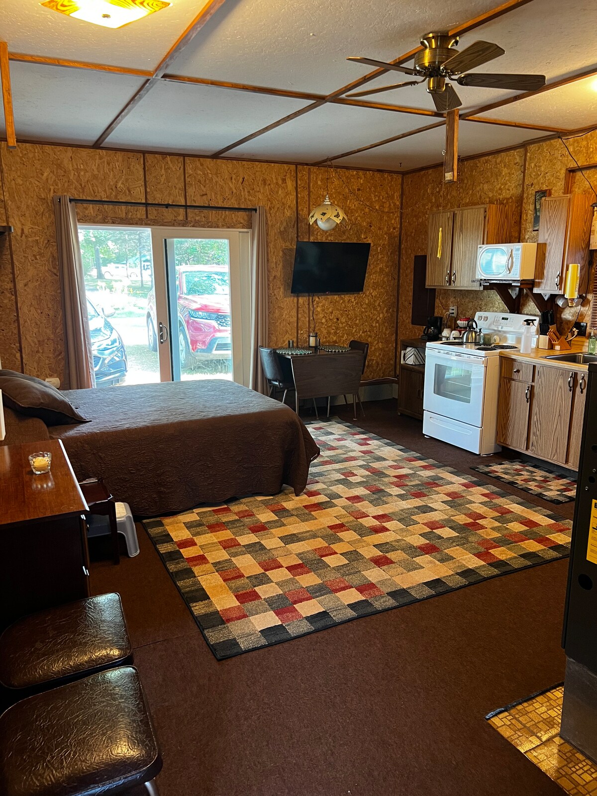 यदि आप एक आरामदायक, आरामदायक पलायन की तलाश कर रहे हैं तो हमारे विंटेज 1950 के दशक के 2 बेडरूम लॉग हाउस को हाल ही में घर के सभी आराम के साथ अपडेट किया गया है। इसमें दृढ़ लकड़ी के फर्श, कैथेड्रल छत, पुराने और नए, इलेक्ट्रिक फायरप्लेस, नए उपकरणों और शॉवर में बड़े चलने के साथ फिर से तैयार किए गए बाथरूम के आरामदायक मिश्रण में सुसज्जित हैं। हमारा घर डाउनटाउन क्लेयर के कुछ ब्लॉक हैं, जहाँ आपको अनोखी स्थानीय दुकानें, भोजनालय और मनोरंजन मिलेंगे।