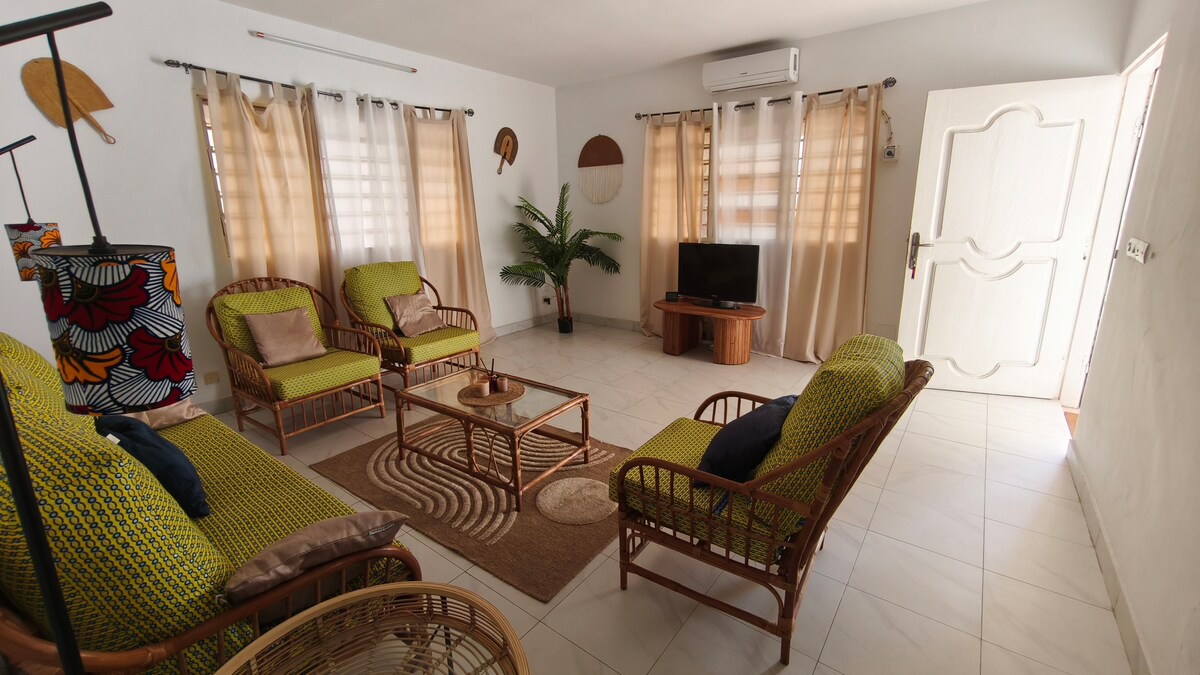 इस ठाठ और आधुनिक घर का आनंद लें। लोमे के बीचों - बीच, ASSIYEYE मार्केट से ज़्यादा दूर नहीं, Agoe और Filo Parc इंटरचेंज से 5 मिनट की दूरी पर। - सभी कमरे वातानुकूलित हैं, - किचन में सभी आधुनिक सुविधाएँ हैं, - लिविंग रूम आपके आराम के पलों को बेहतर बनाने के लिए स्मार्ट टीवी और हिफ़ी सिस्टम से लैस है, - वाईफ़ाई ऑफ़र में शामिल है। - ज़रूरत पड़ने पर एक दरबान 24 घंटे, सभी दिन मौजूद रहता है। - आपके अनुरोध पर हर हफ़्ते सफ़ाई शामिल है