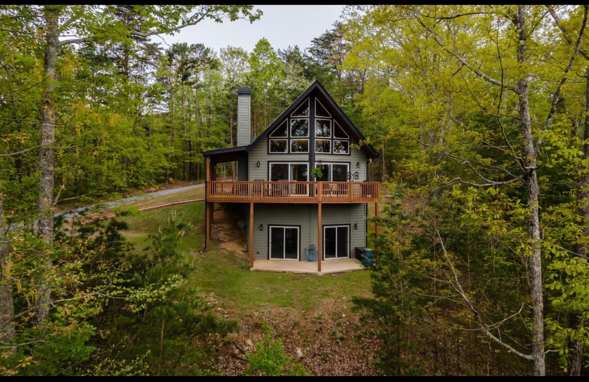 रेंजर, गा में पहाड़ की ओर स्थित 1 किंग बेडरूम 1 बाथ केबिन। डेक, आउटडोर ग्रिल और टीवी में बना हॉट टब। वॉशर और ड्रायर के साथ पूरा किचन! बर्तन, पैन, बेकिंग पैन, सिल्वरवेयर, ग्रिलिंग की ज़रूरी चीज़ें, सीज़निंग, केयूरिग में कॉफ़ी पॉड और क्रीमर की सुविधा दी गई है। सामुदायिक पूल और जिम, आपके अपने बरामदे से लुभावने नज़ारे। S'more के लिए फ़ायर पिट आउट फ़्रंट। बच्चों या अतिरिक्त मेहमानों के लिए लिविंग रूम में ट्विन बेड। ब्लू रिज से सिर्फ़ 1 घंटे की दूरी पर!