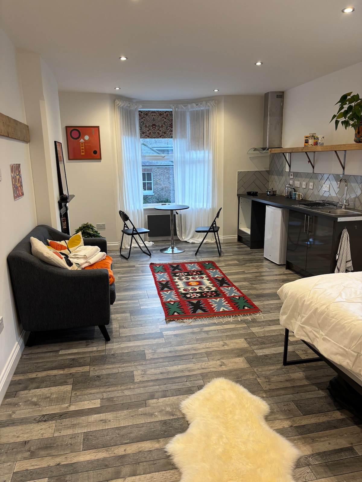 Welcome to Carwen Studio. We can’t wait to host you in sunny Worthing. We are in a lovely walk into the very popular Broadwater and Tarring areas and a short journey to Worthings Cafe and Beachlife. Carwen Studio is well equipped . There is a comfortable lounge with Kitchenette which includes kettle, toaster, microwave and fridge. As well as this great lounge you have a bedroom and shower room and you are welcome to use an allocated of road parking space.
