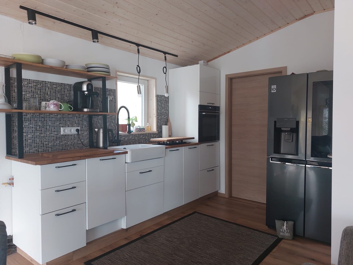 "अच्छा महसूस करें और आराम करें" एक प्यार से सुसज्जित अपार्टमेंट आपको सीधे लुसिट्ज़र सीनलैंड की एक आदर्श रूप से स्थित झील पर इंतजार कर रहा है। हम आपको एक युगल के रूप में, एक परिवार या 2 परिवारों में एक यादगार और आरामदायक छुट्टी का आनंद लेने का अवसर प्रदान करते हैं। - पूरी तरह से सुसज्जित रसोई - भूतल पर टब, शॉवर और शौचालय के साथ बाथरूम - पहली मंज़िल पर शॉवर और शौचालय के साथ दूसरा अलग बाथरूम - मनोरम दृश्य के साथ विंटर गार्डन - कवर किया गया लकड़ी का मंडप - अधिकतम 8 लोग संभव