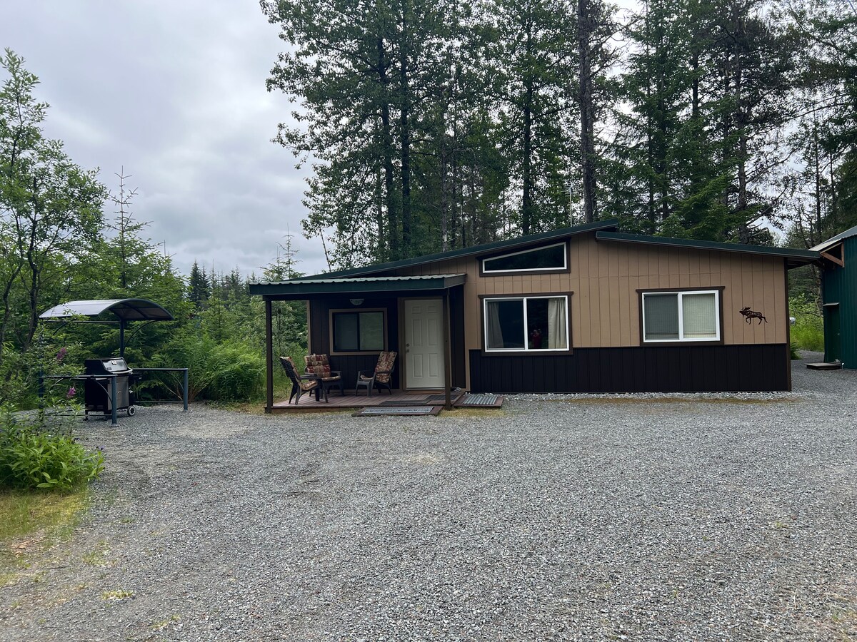 *NOTE* During the winter (Dec-Feb) there is a 3 week minimum booking. Welcome to the cabin in the woods in gorgeous Gustavus, AK! Our recently renovated home is loaded with everything you need for a comfortable, cozy stay. Starlink internet, brand new appliances, well stocked kitchen, smart TV, everything you could hope for! Centrally located off of Wilson Rd, we are a short drive to "Four Corners", the center of town. Lovely views of the Salmon River from the second floor.