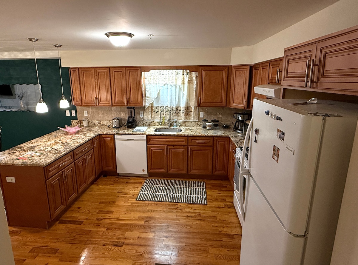 NYC और NJ का अनुभव करें: केंद्र में 2 बेडरूम वाला अपार्टमेंट, डाउनटाउन और मिडटाउन NYC के लिए प्रशिक्षण देने के लिए 5 मिनट की पैदल दूरी पर। एक बहुत ही सुरक्षित और शांत आस - पड़ोस में आरामदायक जगह। सुविधाएँ: → तेज़ वाई - फ़ाई → स्टाइलिश वर्कस्पेस → 50" लिविंग आरएम टीवी डब्ल्यू/नेटफ्लिक्स और अमेज़ॅन प्राइम बेडरूम में→ कार्य स्टेशन मॉनीटर → वॉशर और ड्रायर → बड़ी रसोई → बाड़दार पिछवाड़े → पालतू जानवरों के अनुकूल → मेमोरी फोम रानी और पूर्ण आकार बिस्तर → रानी आकार एयर गद्दे → लंबी और छोटी अवधि के लिए ठहरने की जगहें → मेडिकल और व्यावसायिक पेशेवर → डेस्टिनेशन ट्रैवलर्स