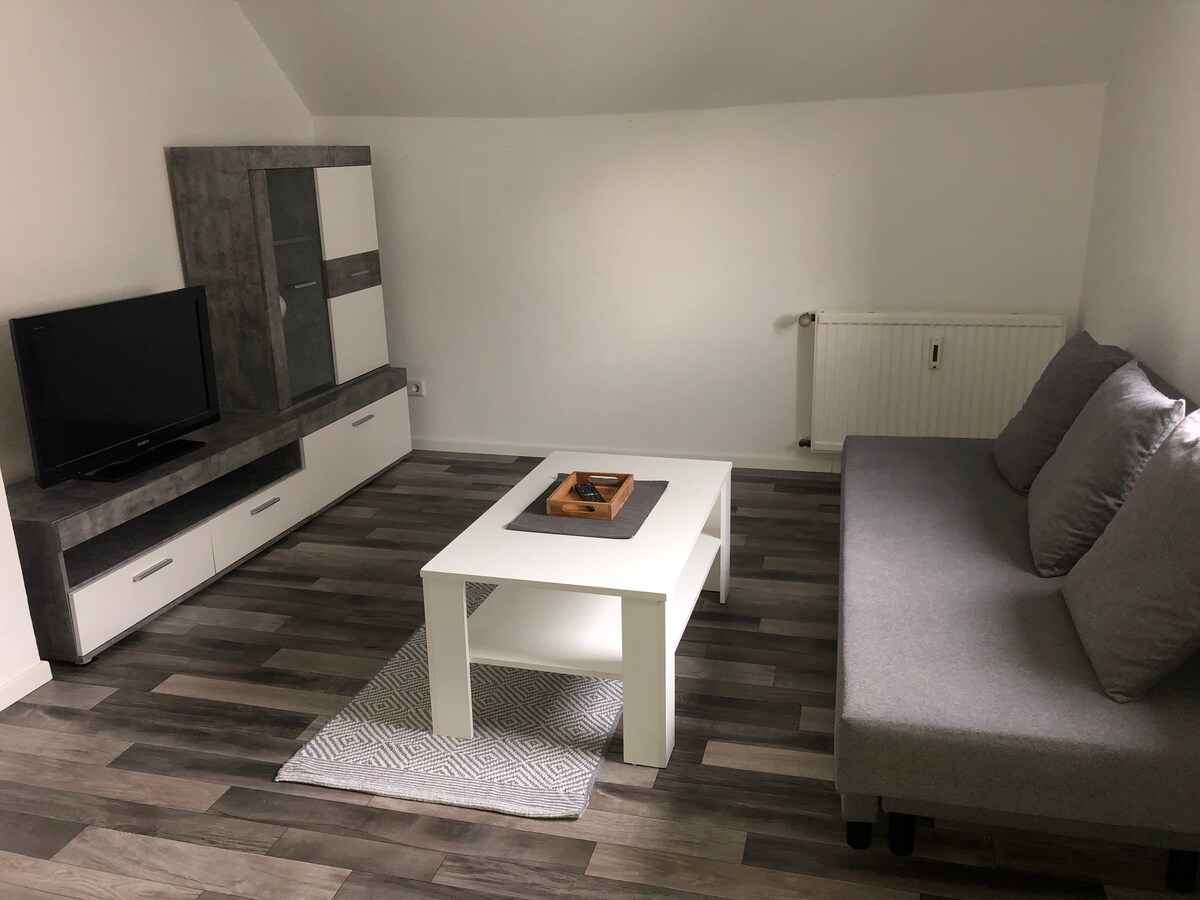 सीधे जंगल में हमारे आधुनिक ससुराल में आपका स्वागत है! आवास में 2 -3 लोग रह सकते हैं और इसमें एक रसोई के साथ - साथ एक आधुनिक, विशाल बाथरूम भी है। अपार्टमेंट आसानी से डसेलडॉर्फ़ और कोलोन के बीच स्थित है और आस - पास के जंगल में लंबी पैदल यात्रा के बेहतरीन रास्ते हैं। प्रकृति और शहर के बेहतरीन मेल का आनंद लें और निजी दरवाज़े, पार्किंग और 24 घंटे सुविधाजनक सेल्फ़ चेक इन की सुविधा देने वाला हमारा अपार्टमेंट अभी बुक करें।