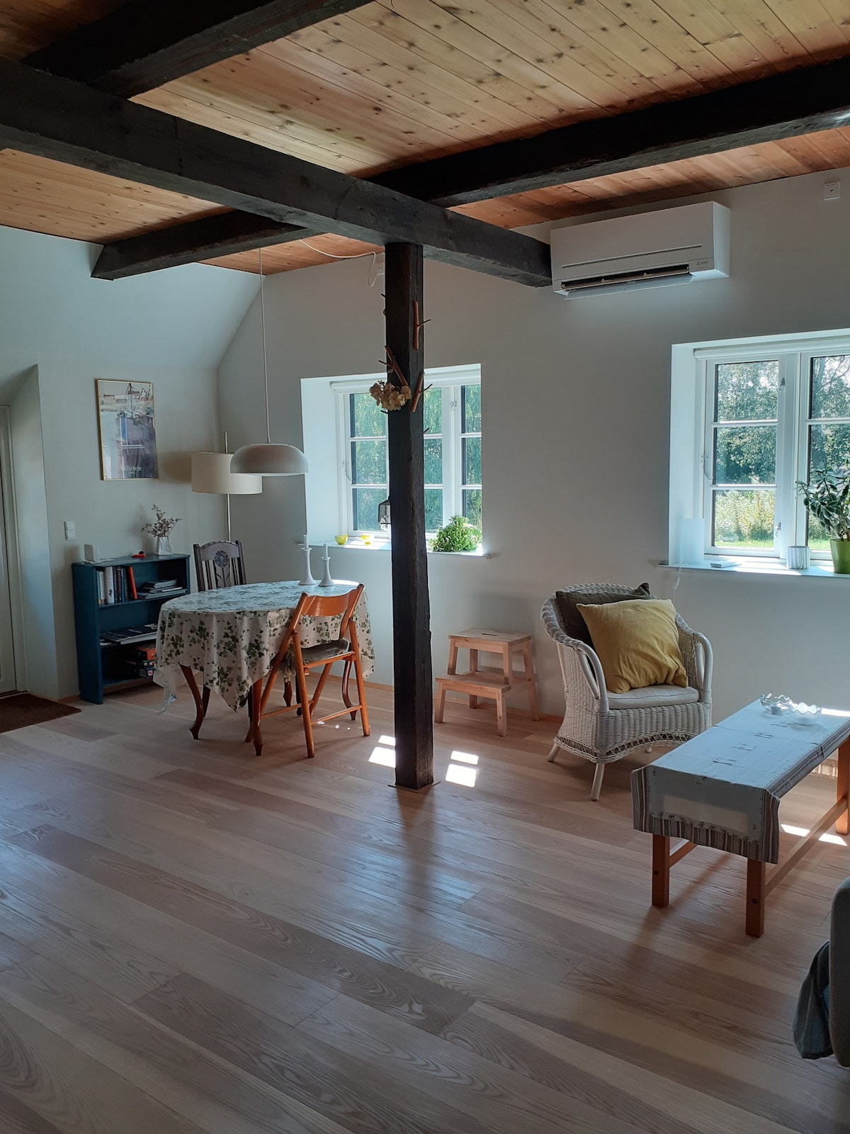 फ़ार्म ग्रैनहोम के इस अनोखे और शांत घर में आराम करें, जो सुंदर बड़े बगीचे के साथ सुंदर परिवेश में स्थित है, और ठीक बाहर झीलों, जंगल और बोग के साथ। हम हेलसिंग के करीब रहते हैं, फिर भी सबकुछ खुद के लिए है। हमारे पास भेड़ और मुर्गियाँ हैं। अपार्टमेंट फ़ार्म के पुराने कैरिज गेट और लिंट में बनाया गया है और इसमें किचन, डाइनिंग कॉर्नर, सोफ़ा कॉर्नर और बेड सेक्शन वाला एक बड़ा कमरा है। सोने की जगह के बगल में शौचालय और बाथरूम। बेड को 2 सिंगल बेड के लिए शेयर किया जा सकता है और सोफ़े पर एक अतिरिक्त बेड बनाया जा सकता है।