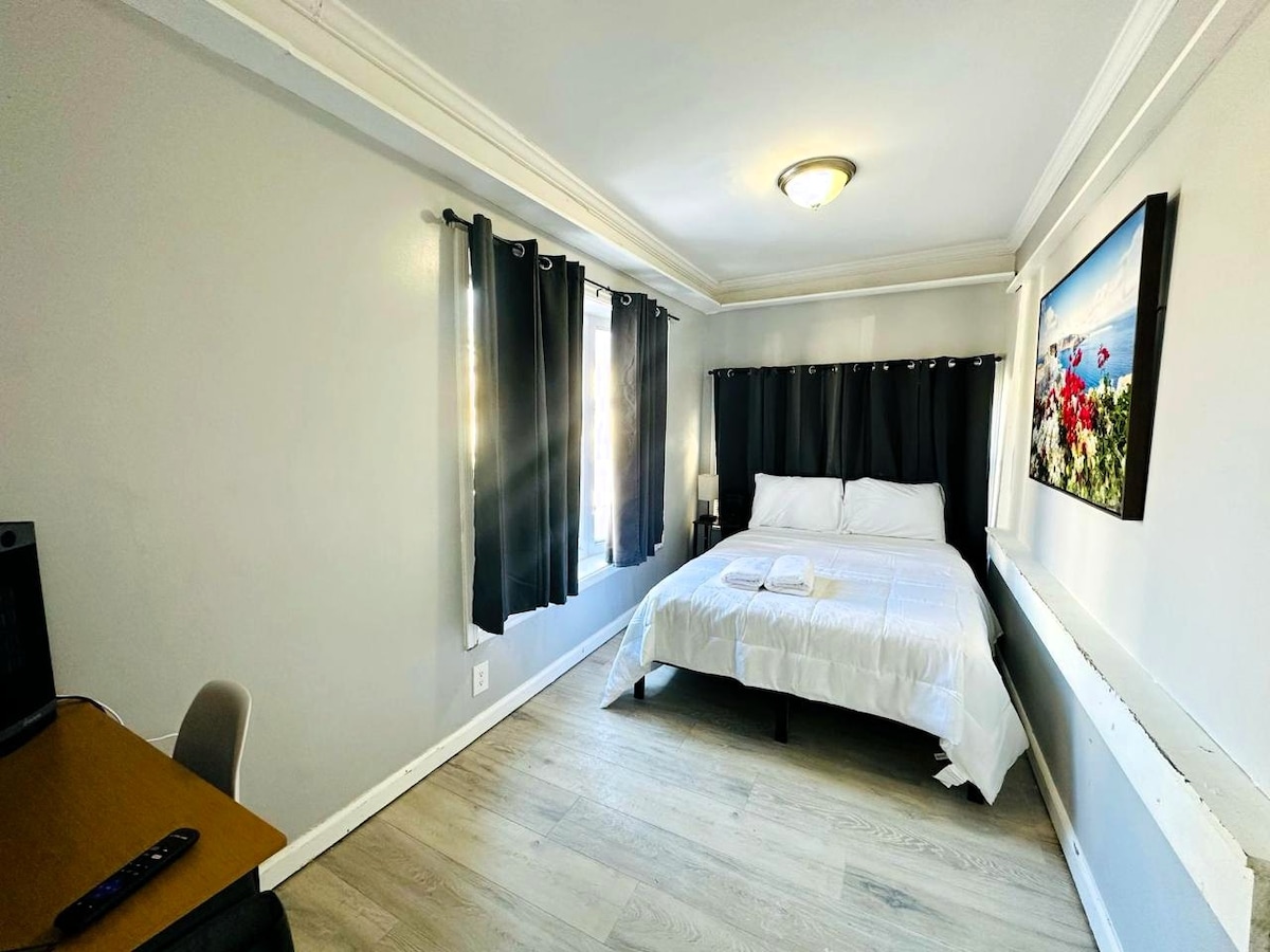 नेवार्क, न्यू जर्सी में अपनी निजी जगह में आपका स्वागत है! यह नई रेनोवेट की गई प्रॉपर्टी अकेले यात्रियों, जोड़ों या व्यावसायिक आगंतुकों के लिए बिल्कुल सही है। एक निजी प्रवेश द्वार, रानी के आकार का बिस्तर, वाई - फ़ाई, फ्लैट - स्क्रीन टीवी, ज़रूरी चीज़ों के साथ रसोई और एक आधुनिक बाथरूम का आनंद लें। नेवार्क हवाई अड्डे से 10 मिनट, नेवार्क पेन स्टेशन से 15 मिनट और अमेरिकन ड्रीम मॉल से 20 मिनट की दूरी पर स्थित है। Weequahic Park से थोड़ी पैदल दूरी पर और Prudential Center, NYC का ऐक्सेस और खाने - पीने के जीवंत विकल्पों के करीब। आराम सुविधा को पूरा करता है!