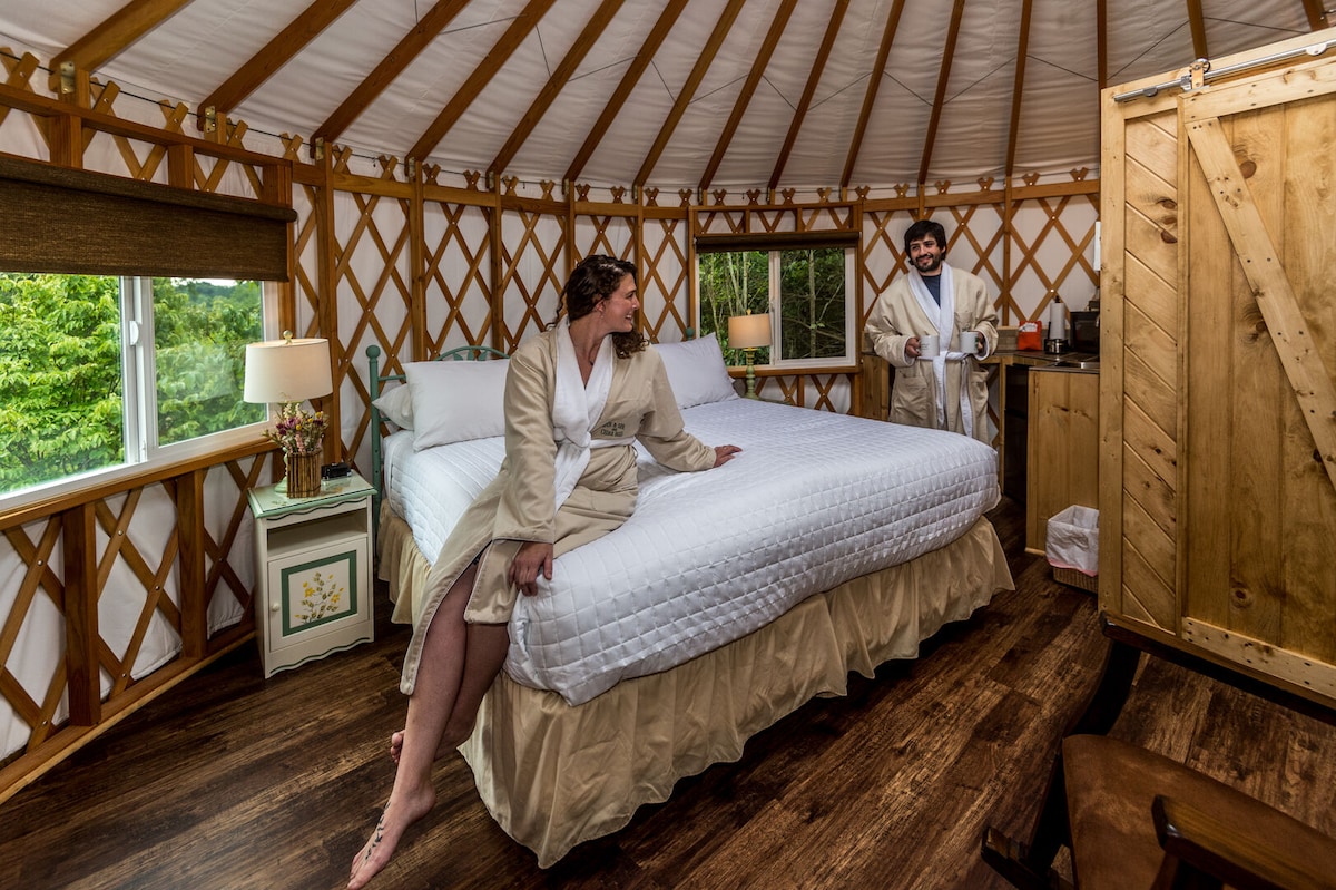Experience our yurts, where adventure meets luxury in Hocking Hills, Ohio. Inspired by ancient Central Asian designs, each yurt is crafted from Douglas fir, insulated with NASA-developed material, and covered with architectural fabric. Wood rafters lead to a central dome, offering starlit views by night and natural light by day. With no televisions, the Firefly Yurt is a tranquil escape that redefines glamping—blending wilderness with modern comforts for an unforgettable stay.