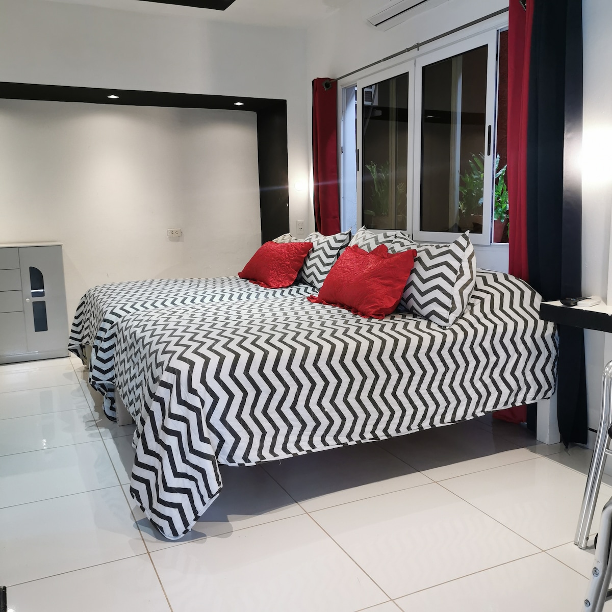 Apartamento independiente a 10 minutos del centro de la ciudad. Disposición de los huéspedes al 100% con entrada independiente. Totalmente equipado, con aire acondicionado, cocina, salón comedor, habitación grande, baño con ducha. La propiedad está bien iluminada y ventilada, en lugar tranquilo y seguro. En la casa se sirve desayuno a precio módico y a solicitud del huésped. Se puede habilitar una habitación extra con cama de matrimonio aceptando los cargos adicionales por huéspedes extra.