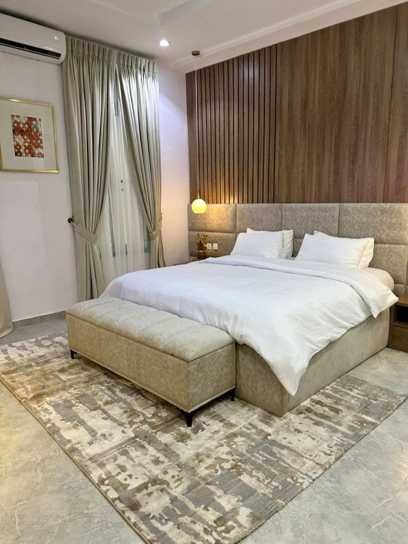 Escape to comfort in this stylish 4-bedrooms, 4.5-bath apartment in Oniru Estate, Victoria Island, Lagos. Enjoy a spacious living room with soft sofa, AC, Wi-Fi, Smart TV with Netflix, and a cozy dining area. The fully equipped kitchen has everything for home-cooked meals. Each ensuite bedroom offers comfort and privacy. Perfect for families, business travelers, or groups seeking luxury, convenience, and 24/7 security in one of Lagos’s most sought-after neighborhoods.