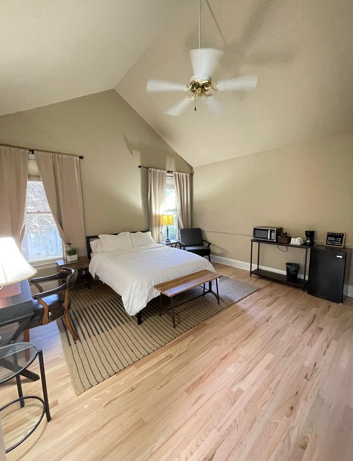 शहर के बीचों - बीच छिपे हमारे छोटे - से मेहमान कॉटेज में आपका स्वागत है। यह रेस्तरां, कॉफ़ी शॉप, एक आर्ट मूवी हाउस और एक सुंदर नदी की पैदल दूरी के ब्लॉक के भीतर है। लेस हाउस/गवर्नर हवेली, बिज़नेस डिस्ट्रिक्ट, MiLB और UofSC थोड़ी पैदल दूरी पर हैं। हमारे घर के पिछले हिस्से में, यह निजी, सुरक्षित और शांत है। एक विभाजन और जंगम स्क्रीन बाथरूम क्षेत्र को अलग करती है। यहाँ एक स्मार्ट टीवी, छोटा फ़्रिज, माइक्रोवेव, कॉफ़ीमेकर और वर्क - टेबल है। 24 घंटे का खुद से चेक इन। STRO -000579 -03 -2024