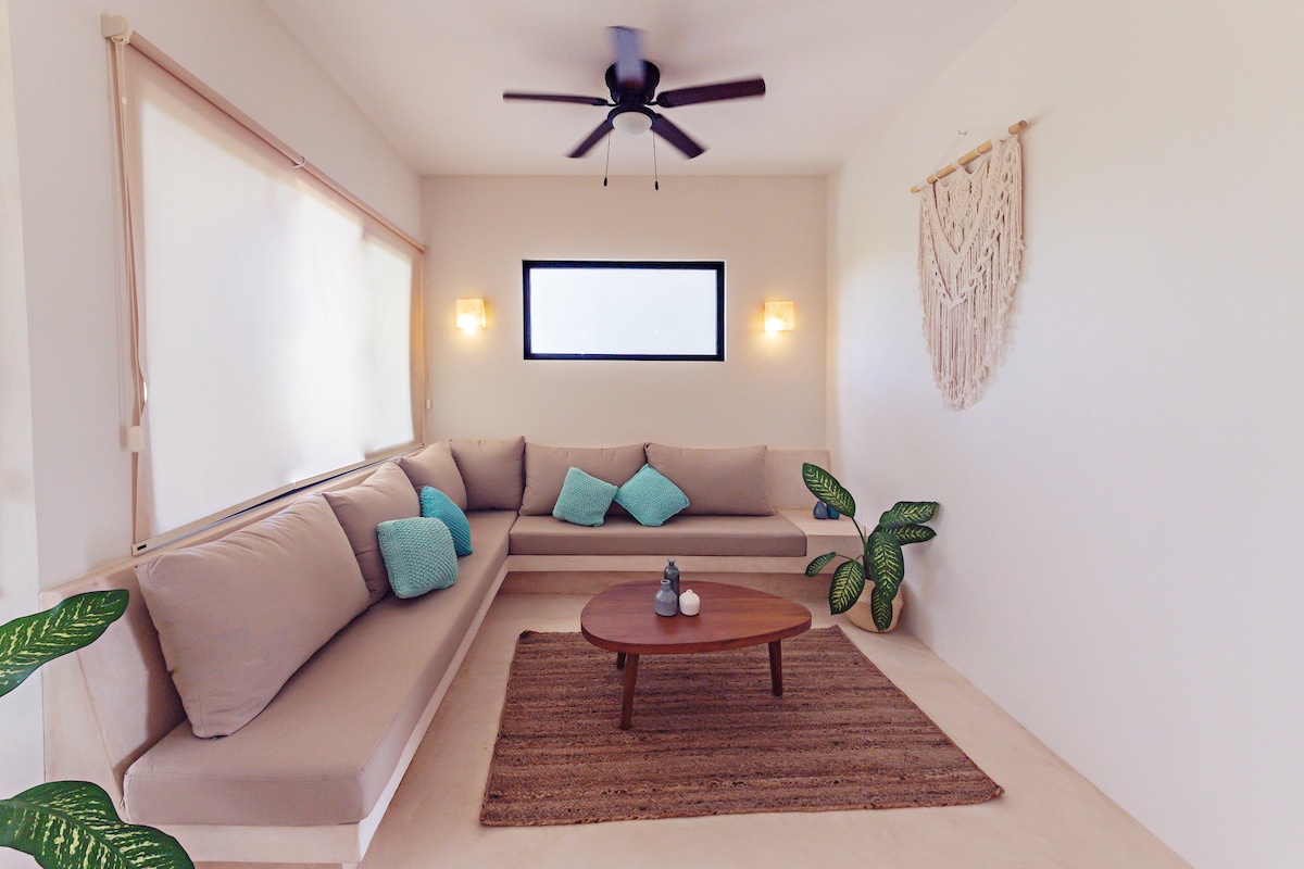 Experience the best of Holbox from this independent beachfront room designed for comfort, privacy, and style. Located right across from the public beach and just a short walk from the island's center. The room features a bohemian style polished-concrete design that blends natural textures with a relaxed island vibe. Enjoy your private balcony with ocean view, after a sunny day at the beach. Stay where the best of Holbox comes together: ocean views, comfort, and authentic island charm ЁЯМ┤ЁЯМЮ