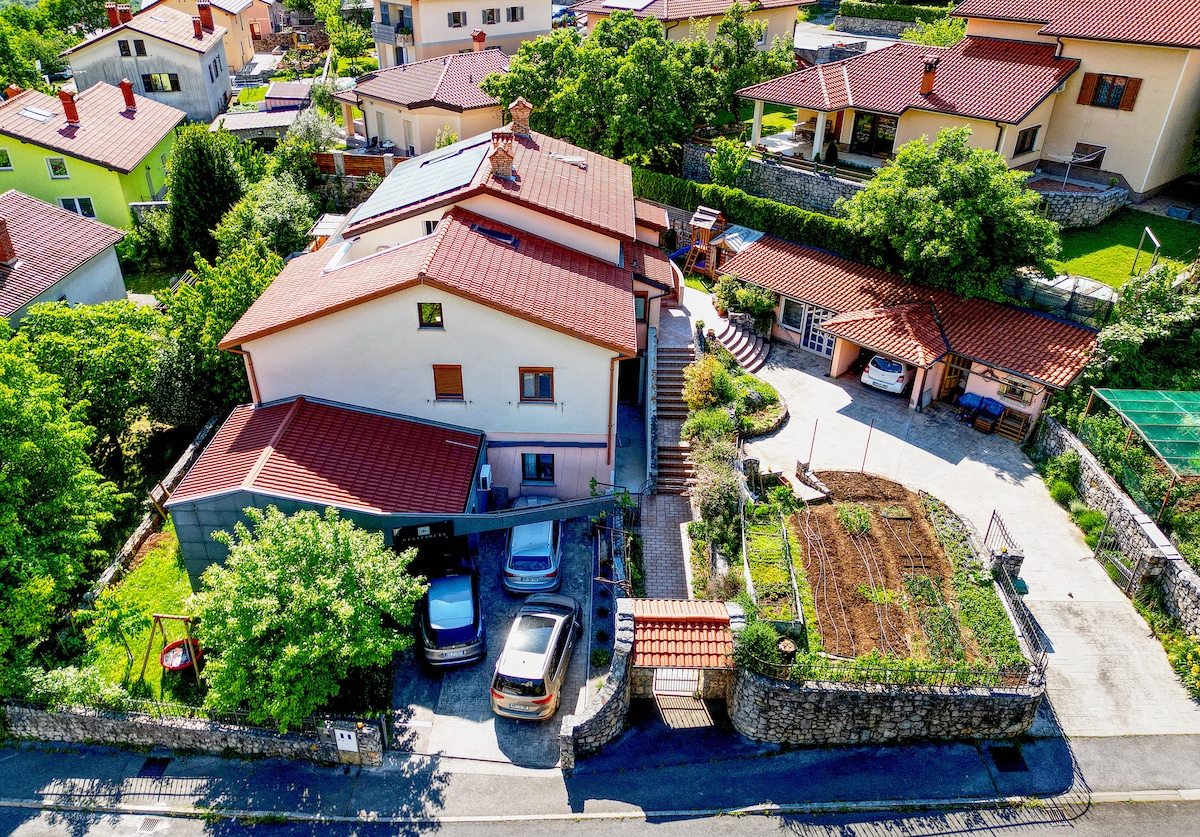 छत और समुद्र के नज़ारे वाले एक शांत, बड़े अपार्टमेंट में आराम करें (हॉट टब प्लस) सरचार्ज)। छत पर आप समुद्र के नज़ारे का आनंद ले सकते हैं, कोपर पर, इटली और पहाड़ों तक। यह अपार्टमेंट स्लोवेनिया और इटली/क्रोएशिया की सैर के लिए बिल्कुल सही है। इसके अलावा, कार्स्ट, इस्ट्रिया और गोरिस्का ब्रदा वाइन क्षेत्र आपको खूबसूरत सैर के लिए आमंत्रित करते हैं। जोड़ों, सक्रिय छुट्टियों, खाने के शौकीनों और वेलनेस प्रेमियों के लिए बिल्कुल सही। पार्किंग गैराज और साइकिल पार्किंग के साथ।