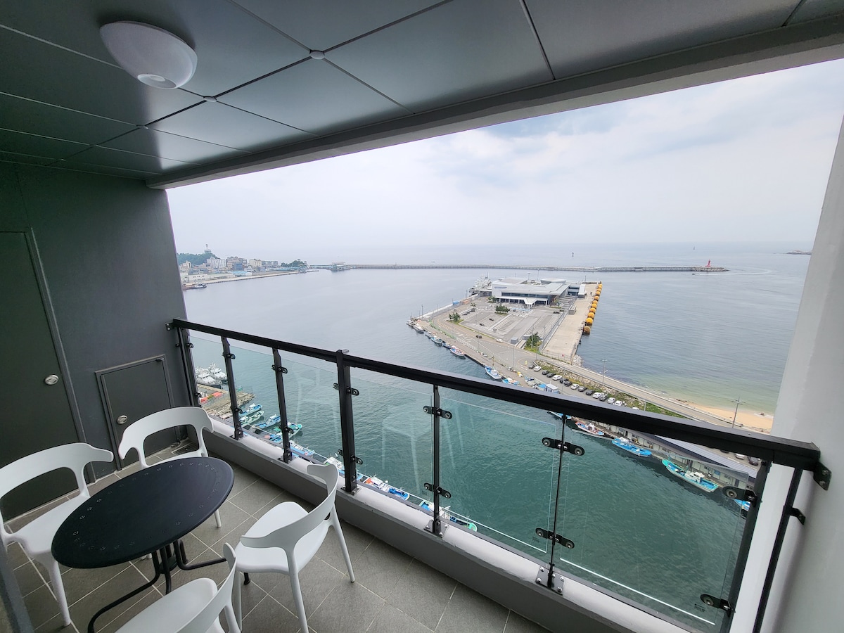 #1 25वीं मंज़िल/5 मिनट से सोखा/ब्लू टेरेस कॉर्नर रूम/दो खिड़कियाँ/सोक्चो आई व्यू।Ulsan Bawi View. Cheongcho Lake View/Netflix/View Restaurant