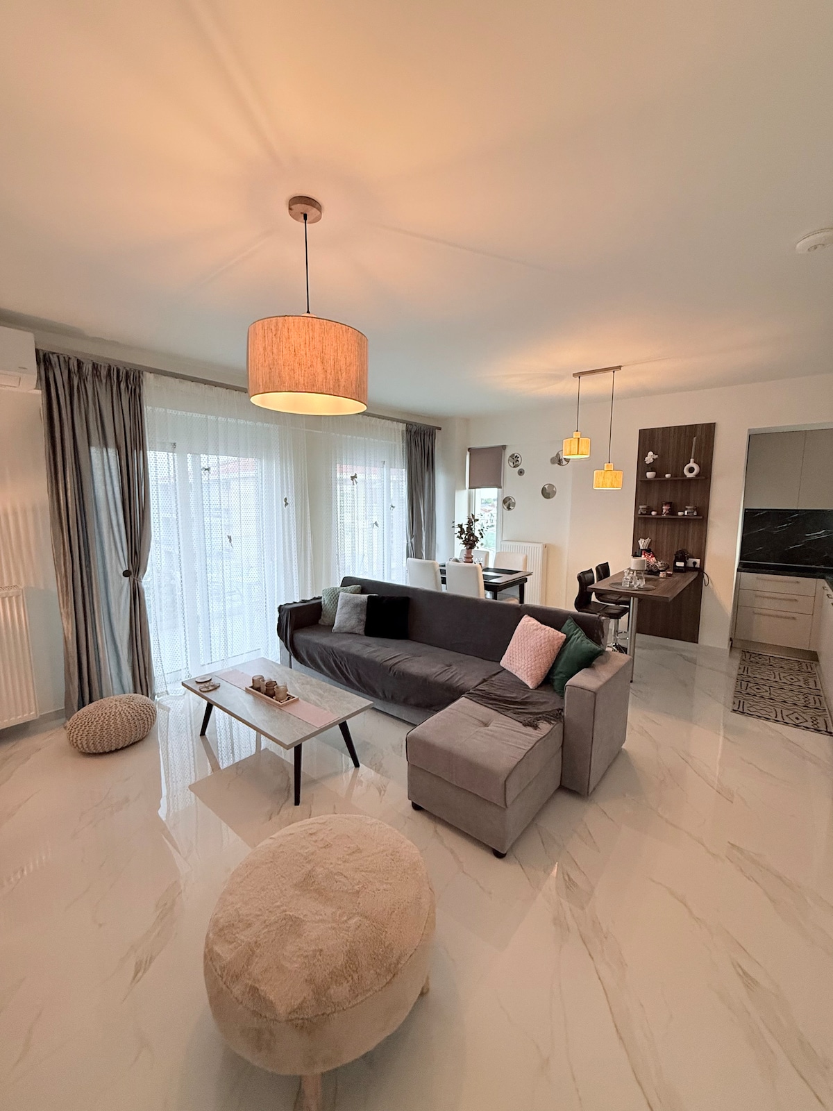 Meteora मठों से मिनटों की दूरी पर, कलामपाका में एक उज्ज्वल, सोच - समझकर डिज़ाइन किए गए अपार्टमेंट में आराम करें। आलीशान चादरों वाले विशाल बेडरूम, टीवी के साथ एक शांत लिविंग रूम और बैठने की जगह वाली एक निजी बालकनी आपके एक्सप्लोरेशन के बाद एक परफ़ेक्ट रिट्रीट देती है। एक समर्पित डेस्क और हाई - स्पीड वाई - फ़ाई रिमोट वर्क को सपोर्ट करता है, जबकि सुखदायक टोन, लकड़ी के फ़र्श और कुदरती रोशनी आपके आने के बाद से ही जगह को तरोताज़ा, आधुनिक और स्वागत योग्य बनाती है।