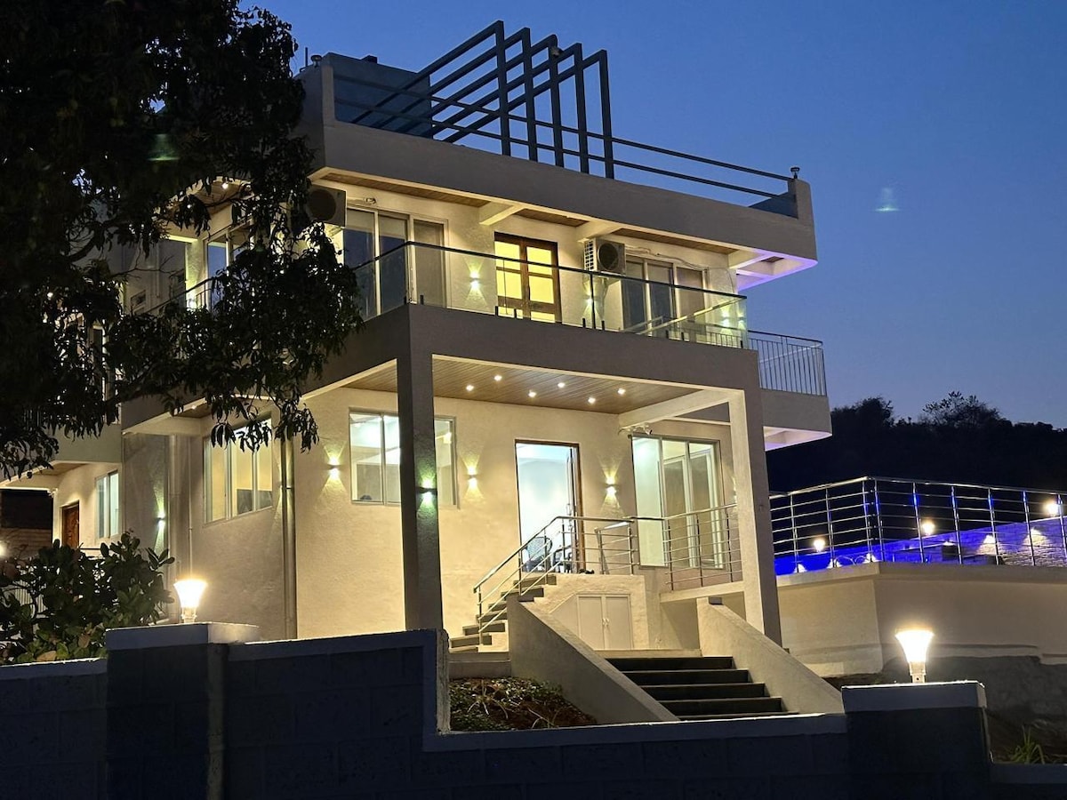 Villa Celestria blends sleek modern design with the calm of its natural surroundings. Overlooking lush green hills and valleys, it’s a refreshing retreat for families, groups, and weekend travelers seeking luxury with tranquility. Spacious Bedrooms – Comfortable spaces designed with modern charm and relaxation in mind Glass-Front Views – Floor-to-ceiling windows framing serene hills and valleys Private Pool with Water Features – Cascading elegance and ambient lighting for day and night