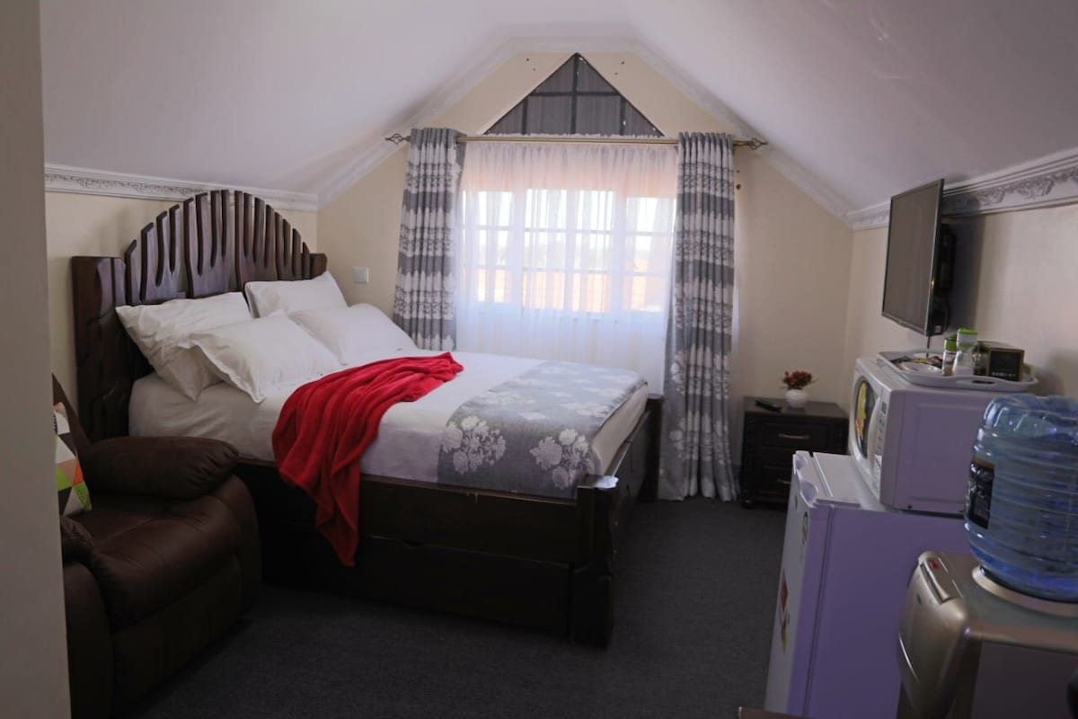 Hawas Loft एक सुंदर विशाल पेंटहाउस है जो Kiamunonavirus एस्टेट, Nakuru काउंटी की पहाड़ी पर स्थित है, जो व्यस्त Nakuru - kabarak सड़क के साथ 100 मीटर की दूरी पर है। इस आरामदायक जगह को कम समय के लिए किराए पर देने के लिए तीन बेडरूम हैं, जिनमें एक बड़ा लिविंग रूम और किचन है। आवास आपके बाईं ओर झील नाकूरू का एक मनोरम दृश्य प्रदान करता है, आपके दाईं ओर नगता एस्टेट की सौम्य ढलान और मेनेंगई क्रेटर का एक पोस्टर दृश्य। सुविधाओं में 24 घंटे सीसीटीवी, वाईफ़ाई और पर्याप्त पार्किंग वाला आँगन शामिल है।