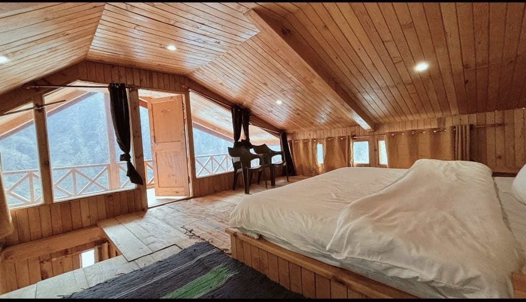 рдкрд╣рд╛рдбрд╝реЛрдВ рдХреА рдКрдБрдЪрд╛рдИ рдкрд░ рдмрд╕рд╛ рдпрд╣ рд▓рдХрдбрд╝реА рдХрд╛ рдХреЙрдЯреЗрдЬ рдПрдХ рд╢рд╛рдВрддрд┐рдкреВрд░реНрдг рдард┐рдХрд╛рдирд╛ рд╣реИ, рдЬреЛ рджреЗрдЦрдиреЗ рдореЗрдВ рдЖрд╕-рдкрд╛рд╕ рдХреЗ рдирдЬрд╝рд╛рд░реЛрдВ рдХрд╛ рд╣рд┐рд╕реНрд╕рд╛ рд▓рдЧрддрд╛ рд╣реИред рд╕реНрдерд╛рдиреАрдп рд░реВрдк рд╕реЗ рдкреНрд░рд╛рдкреНрдд рд▓рдХрдбрд╝реА рд╕реЗ рдирд┐рд░реНрдорд┐рдд, рдпрд╣ рдХреЙрдЯреЗрдЬ рдЕрдкрдиреЗ рдКрдмрдбрд╝-рдЦрд╛рдмрдбрд╝ рдкрд░рд┐рд╡реЗрд╢ рдХреЗ рд╕рд╛рде рдирд┐рд░реНрдмрд╛рдз рд░реВрдк рд╕реЗ рдШреБрд▓-рдорд┐рд▓ рдЬрд╛рддрд╛ рд╣реИ, рдЬреЛ рд╣рд╡рд╛рдУрдВ рд╕реЗ рдЙрдбрд╝рддреА рдЪреЛрдЯрд┐рдпреЛрдВ рдФрд░ рдЕрд▓реНрдкрд╛рдЗрди рдЬрдВрдЧрд▓реЛрдВ рдХреЗ рд╕рд╛рдордиреЗ рдордЬрд╝рдмреВрддреА рд╕реЗ рдЦрдбрд╝рд╛ рд╣реИред рдмреЗрдбрд░реВрдо рдореЗрдВ рд▓рдХрдбрд╝реА рдХреЗ рдмреЗрдб, рдКрдиреА рдХрдВрдмрд▓ рдФрд░ рдореБрд▓рд╛рдпрдо рдЪрд╛рджрд░реЗрдВ рд╣реИрдВ, рдЬреЛ рдЧрд╣рд░реА рдФрд░ рд╕реБрдХреВрдирджреЗрд╣ рдиреАрдВрдж рдХреЗ рд▓рд┐рдП рдмрд┐рд▓рдХреБрд▓ рд╕рд╣реА рд╣реИрдВред рдпрд╣ рдкрд╣рд╛рдбрд╝реА рд▓рдХрдбрд╝реА рдХрд╛ рдХреЙрдЯреЗрдЬ рд╕рд┐рд░реНрдлрд╝ рдПрдХ рдШрд░ рдирд╣реАрдВ рд╣реИтАФрдпрд╣ рдкреНрд░рдХреГрддрд┐ рдХреЗ рд╕рд╛рде рджреЛрдмрд╛рд░рд╛ рдЬреБрдбрд╝рдиреЗ рдХреА рдЬрдЧрд╣ рд╣реИред