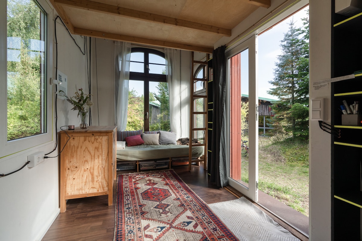 Inmitten des Biosphärenreservats Niedersächsische Elbtalaue erwartet Euch ein liebevoll gestaltetes Tiny House, das mit seiner persönlichen Note und durchdachten Details zum Verweilen einlädt. Nur zehn Gehminuten vom idyllischen Sumter See entfernt, verbindet es naturnahes Wohnen mit modernem Komfort. Der helle Wohnraum wurde mit natürlichen Materialien gestaltet und große Fenster schaffen eine harmonische Verbindung zur umgebenden Natur, sodass Ihr Euch sofort wie zu Hause fühlt.