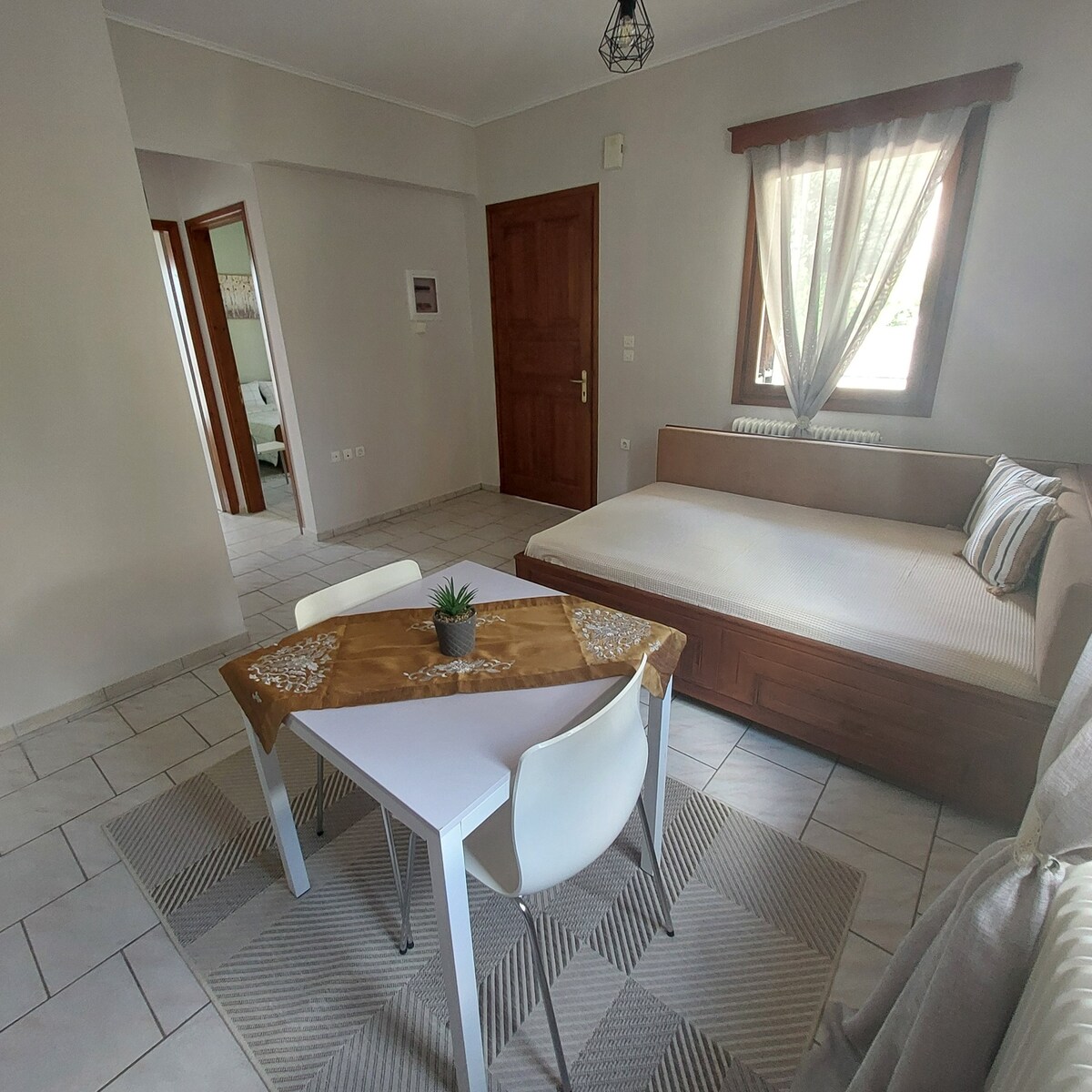 जिस शांत स्थान में यह स्थित है, वह परिचारिका के आतिथ्य और मित्रता के साथ संयुक्त रूप से आपके प्रवास को अविस्मरणीय बनाता है। यह एक गर्म, स्वागत योग्य और सुखद जगह है!मेहमान चिमनी से बैठ सकते हैं और अपनी कॉफी या अपार्टमेंट की छत का आनंद ले सकते हैं, गांव की शांति, सकारात्मक आभा और असीमित हरे रंग के दृश्य का आनंद ले सकते हैं। यह आराम करने के लिए एक आदर्श जगह है।