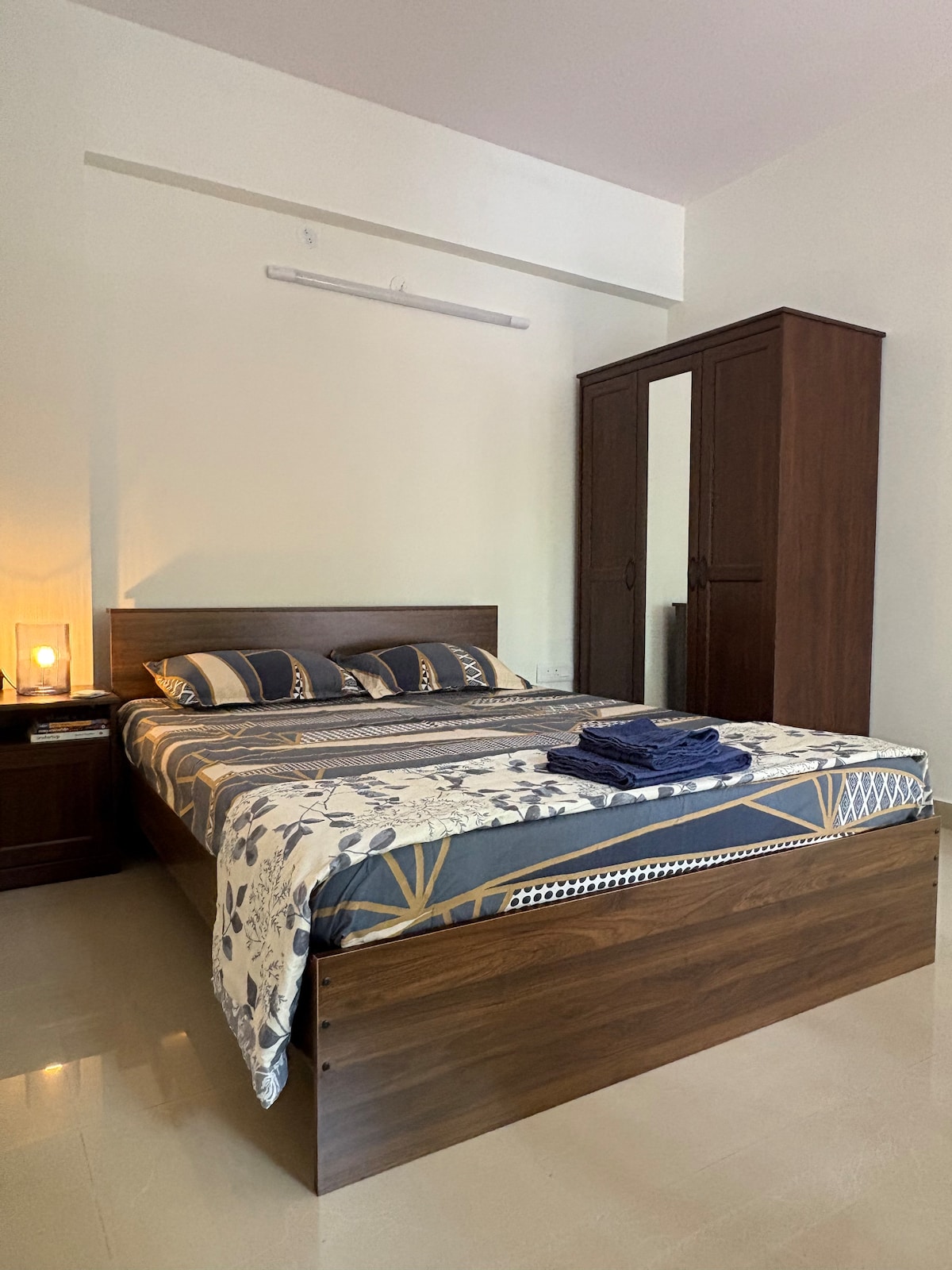 हमारे बिल्कुल नए, प्रीमियम 1 - BHK अपार्टमेंट में आपका स्वागत है, जो एक बेहतरीन केंद्रीय लोकेशन में आराम और निजता की तलाश करने वाले जोड़ों और यात्रियों के लिए आदर्श है। बेडरूम में रात को चैन से सोने के लिए एक क्वीन बेड है, जिसमें मुलायम आर्थोपेडिक गद्दे हैं। स्मार्ट टीवी, बिजली - तेज़ वाईफ़ाई और खुली रसोई की जगह के साथ आरामदायक लिविंग रूम में आराम करें। नहाने की ज़रूरी चीज़ों से भरा एक बेहद साफ़ - सुथरा बाथरूम है। पूरी तरह से सुसज्जित किचन में आपके खान - पान के एडवेंचर के लिए बेहतरीन क्वालिटी के उपकरण और क्रॉकरी शामिल हैं!