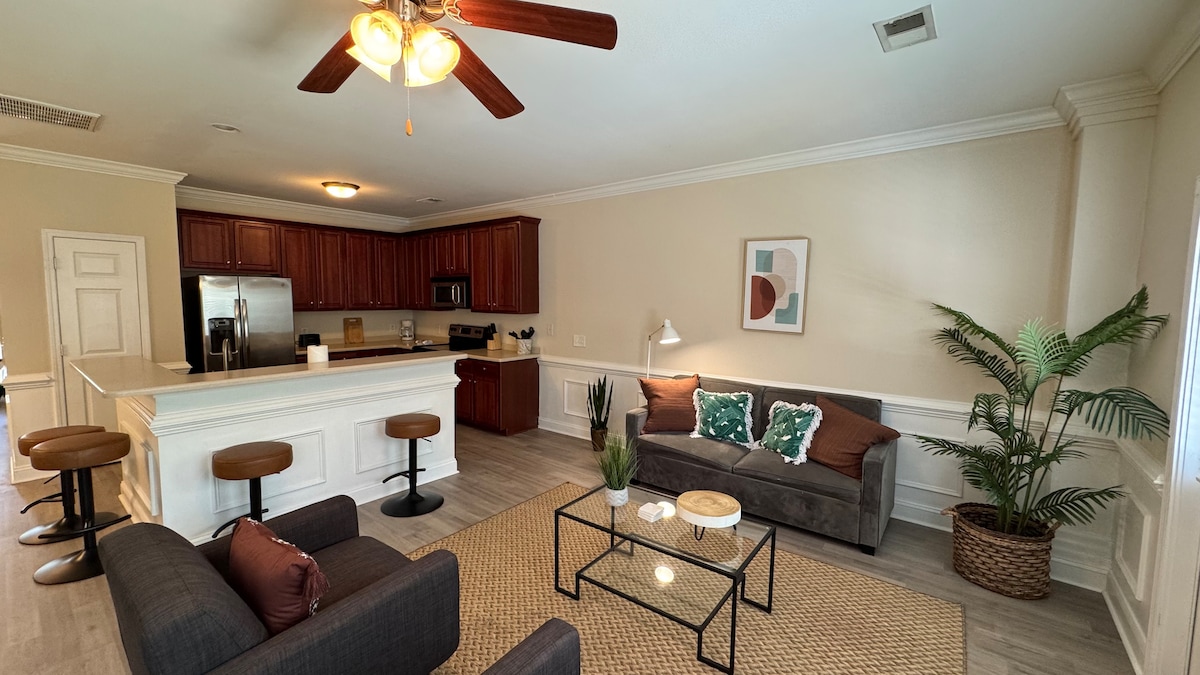 इस शांतिपूर्ण, अच्छी तरह से नियुक्त 4 bdrm घर में एक आकर्षक दक्षिणी पलायन का आनंद लें। हम शांत और upscale Wescott बागान में एक सुंदर गोल्फ समुदाय में स्थित हैं। घर की सुविधाओं का आनंद लेते हुए आराम करें, लेकिन पूरे घर की कोहनी का कमरा। हम मुफ्त वाईफाई, एक पुस्तकालय/गेम रूम (पुस्तकों, खेल और पहेली के साथ पूरा) पूर्ण आकार के वॉशर/ड्रायर, गर्मियों के महीनों में सामुदायिक पूल, पिछवाड़े BBQ और अधिक प्रदान करते हैं। हम आसानी से 2 परिवार या एक बड़े समूह की मेज़बानी करने के लिए तैयार हैं।