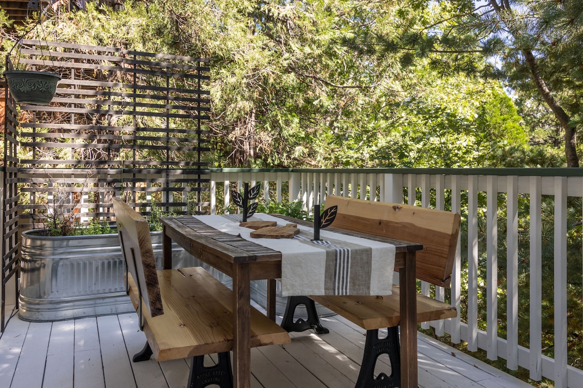 रैंचो पाइंस एक क्लासिक ए - फ्रेम है जिसमें आधुनिक किराए और देहाती आकर्षण का एक नया संतुलन है। एक शांत कल - डे - सैक पर गांव और स्नो समिट स्की रिसॉर्ट से सिर्फ 1.2 मील की दूरी पर स्थित है, जहां आप बनना चाहते हैं। किचन को नए सिरे से तैयार किया गया है, प्राकृतिक रिवर रॉक फ़्लोरिंग पर बाथरूम हैं। बीबीक्यू, बैठने की जगहों और निजी हॉट टब के साथ, डेक के चारों ओर 280 डिग्री की चादर पर बाहर निकलें। (कोई पालतू जानवर नहीं) मेरे पास सुरक्षा के लिए ड्राइववे की निगरानी करने वाला एक बाहरी कैमरा है