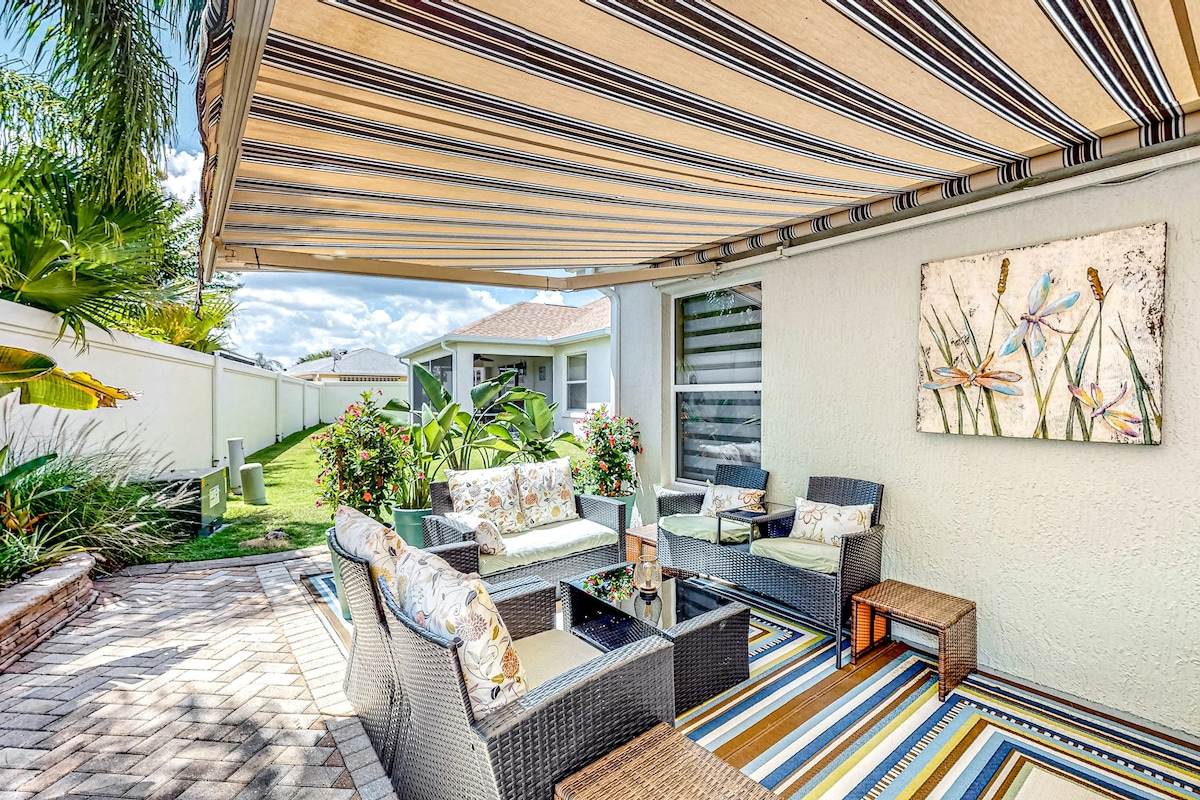 This home is the perfect vacation. When we saw this beautifully decorated villa, we felt like we were home. The exquisite landscaping was exactly what we have been looking for! The location is a mile from Sumter Landing and a stone's throw from the two pools, billiards, shuffleboard, pickleball, bocce ball. The best way to see it all is by the golf cart!!! The Villages has its own GPS for the Cart Paths. Schedule your stay and start packing your bags for an amazing experience.