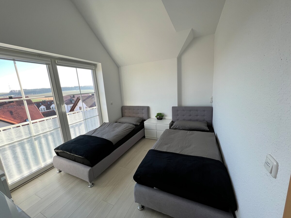 Stilvolle sehr ger├дumige und helle neue Ferienwohnung mit hochwertiger Ausstattung im Zentrum von Erding, N├дhe Therme/Erdinger Wei├Яbr├дu. Die Wohnung liegt an einem idyllischen Bach mit Blick ins Gr├╝ne und ist zentral gelegen. Einkaufsm├╢glichkeiten, Caf├йs u. Restaurants in naher Umgebung sind zahlreich vorhanden. Super Ausgangspunkt f├╝r Ausfl├╝ge aller Art Stadtpark, Badesee, S-Bahn-Anschluss fussl├дufig, N├дhe Flughafen und Messe M├╝nchen Ideal f├╝r Thermeng├дste, Gesch├дftsreisende u. Familien