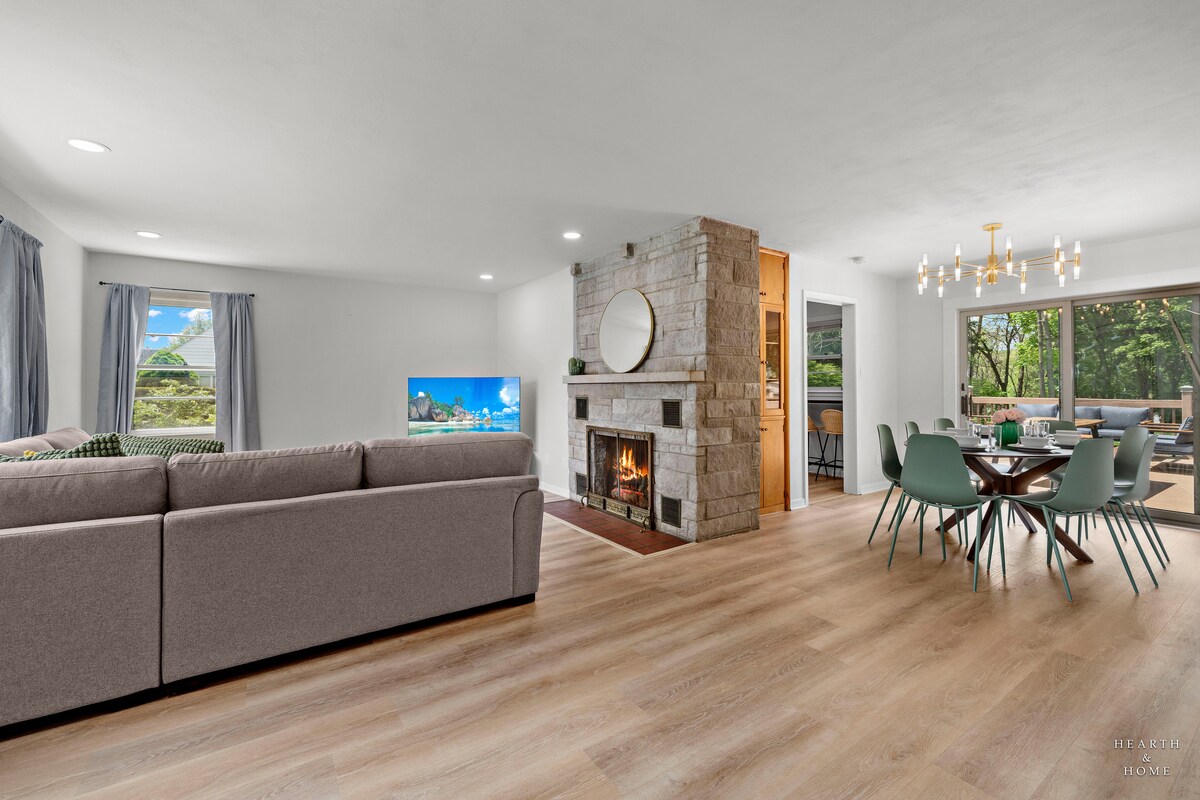 एक अविस्मरणीय तरीके से प्रकृति और डिजाइन का अनुभव करें! यह सोच - समझकर तैयार किया गया घर 200+ एकड़ जंगल, प्रेयरी और घास के मैदान से घिरा एक अद्वितीय हरे समुदाय के भीतर स्थित है - फिर भी बंदरगाह देश में समुद्र तट, महान रेस्तरां, वाइनरी और गतिविधियों के लिए मिनट। एक अनोखा और विसर्जित कला अनुभव हर मेहमान का इंतज़ार कर रहा है। Dunefarmhouse को टाइमआउट पत्रिका में 2019 -2020 में "मिडवेस्ट में शीर्ष 10 Airbnb किराये" और "परफेक्ट मिडवेस्ट गेटवेज़" के हिस्से के रूप में दिखाया गया था।