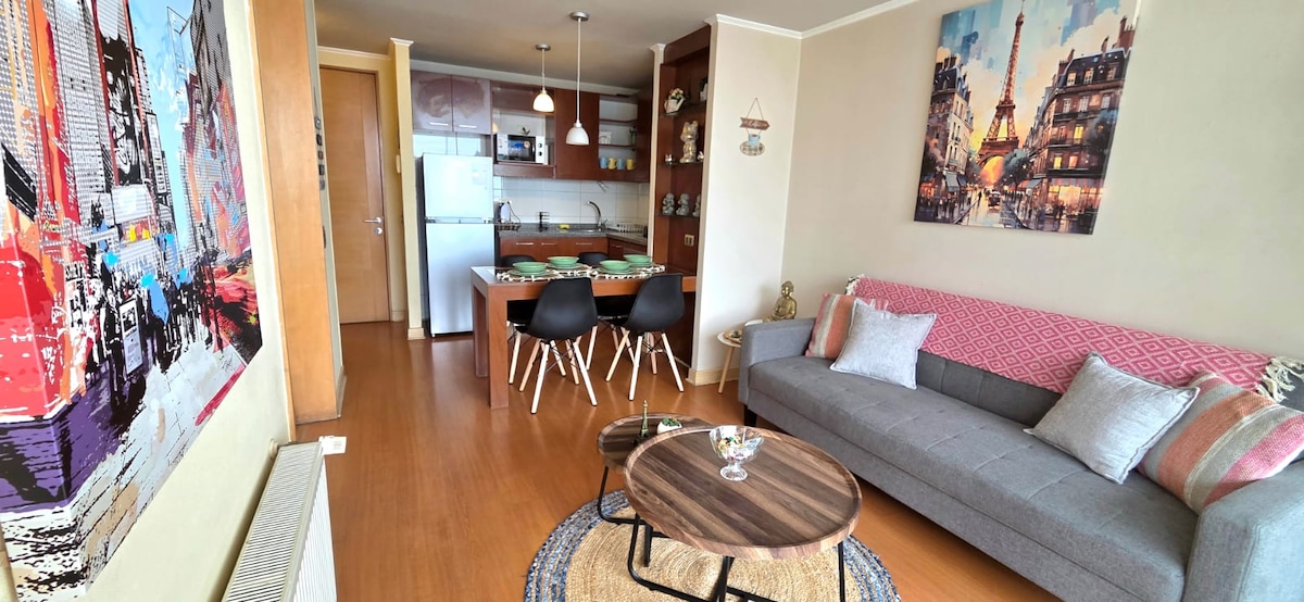 Ven y descubre un peque├▒o lugar tranquilo ,c├│modo y con todas las comodidades que necesitas para tener un rico descanso en esta linda ciudad ...VI├СA TE ESPERA!!! El dpto es ubicado a pasos del rodoviario (terminal de buses ),del supermercado ,del mall Paseo Vi├▒a Centro ,de farmacias ,del hospital p├║blico H Gustavo Fricke y cl├нnicas privadas, con excelente locomoci├│n colectiva en la esquina del edificio . No hay estacionamiento disponible dentro de las instalaciones solo fuera del edificio.