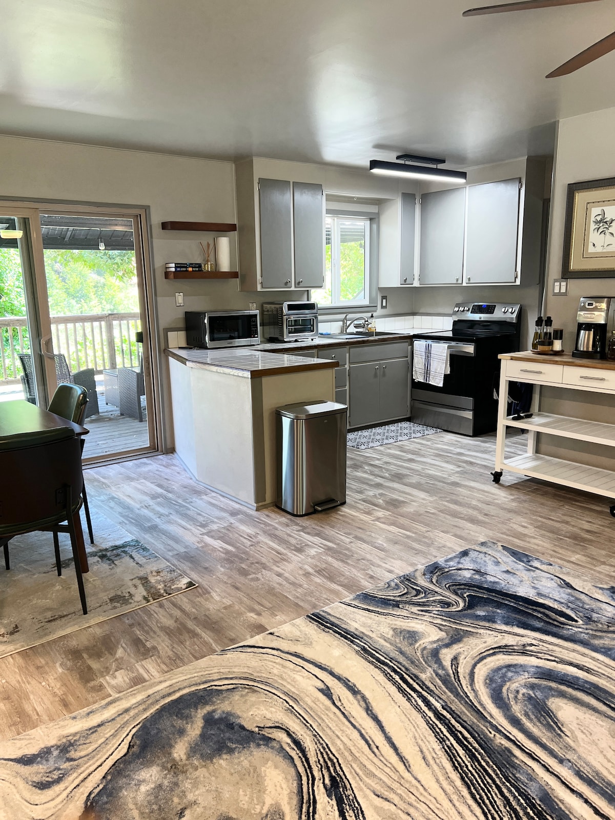 स्टूडियो एक सूरज से भरा, बहुत विशाल निजी कमरा है जिसमें सलंग्न बाथरूम है, और दक्षिण का सामना करना पड़ डेक, एक बड़े फूल और फलों के पेड़ से भरे यार्ड में मुख्य घर के पीछे एक अलग इमारत में स्थित है। यार्ड अक्सर फेलिक्स के साथ साझा किया जाता है हमारी चंचल tuxedo बिल्ली और ब्लॉसम हमारे मैकनाब शेफर्ड। हम ऊपर मौजूद अपार्टमेंट "ओस्प्रे एरी" को भी किराए पर देते हैं, जिसमें एक पूरा किचन, वॉशिंग मशीन और ड्रायर है।