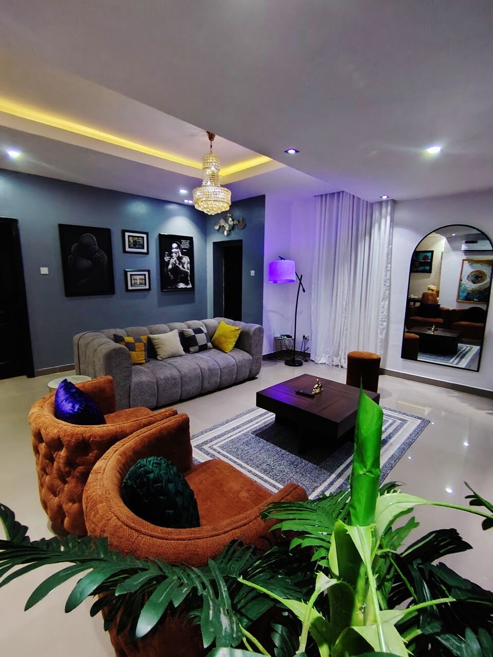 You're welcome to our apartment, located in a gated estate with restricted access to the general public. We offer 24rs electricity and air conditioning of your apartment. It is a tasty, Homely & Family-themed 2-Bedroom Apartment with a Balcony. It's the perfect place for a family vacation & weekend getaway, bridal showers, marriage proposal etc. We have the following: 24hrs Electricity 24hrs Air Conditioning 24hrs hot water Clean Water Starlink Wi-Fi Errand services