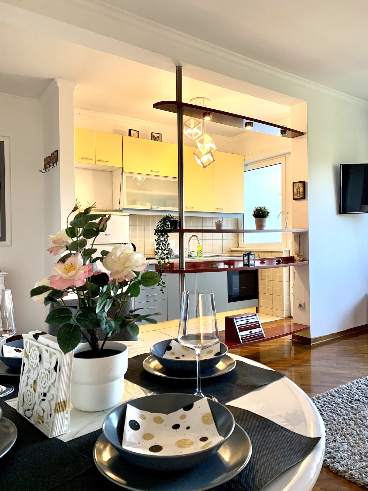 अपार्टमेंट कुछ महीने पहले पूरी तरह से पुनर्निर्मित है और सब कुछ एकदम नया है। बेडरूम में लिविंग रूम में एक बड़ा आरामदायक डबल बेड और एक बड़ा सोफा बेड है। सभी में विचारशील प्रकाश का नेतृत्व किया। किचन में आप एक आधुनिक फ्लैट - स्क्रीन कुकर, ओवन, फ़्रीज़र वाला फ़्रिज, डिशवॉशर और वॉशिंग मशीन और एक बड़ी बार टेबल का आनंद ले सकते हैं। बाथरूम संगमरमर के सिरेमिक के साथ चमकता हुआ है, यह बहुत कॉम्पैक्ट और साफ है। बाथरूम एक हेअर ड्रायर, तौलिए, स्वच्छता सेट से सुसज्जित है।