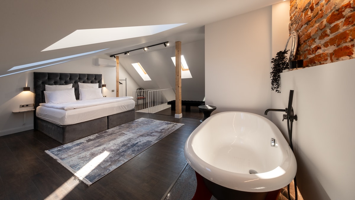 पुराने शहर के ऐतिहासिक केंद्र के बीचों - बीच बसा एक स्टाइलिश ढंग से पुनर्निर्मित दो - बेडरूम वाला अपार्टमेंट है, जो आपकी सुविधा के लिए होटल जैसी सुविधाओं से लैस है। इस आकर्षक जगह में दो आरामदायक डबल बेड, तरह - तरह की कॉफ़ी और चाय वाला किचन, एक मल्टीफ़ंक्शनल डेस्क और शावर वाला एक आधुनिक बाथरूम है। पुराने शहर के बाज़ार, जीवंत बार और आकर्षक संकरी सड़कों के आकर्षण को गले लगाएँ। व्यक्तिगत कुंजी कोड के साथ खुद से चेक इन करने में आसानी का आनंद लें।