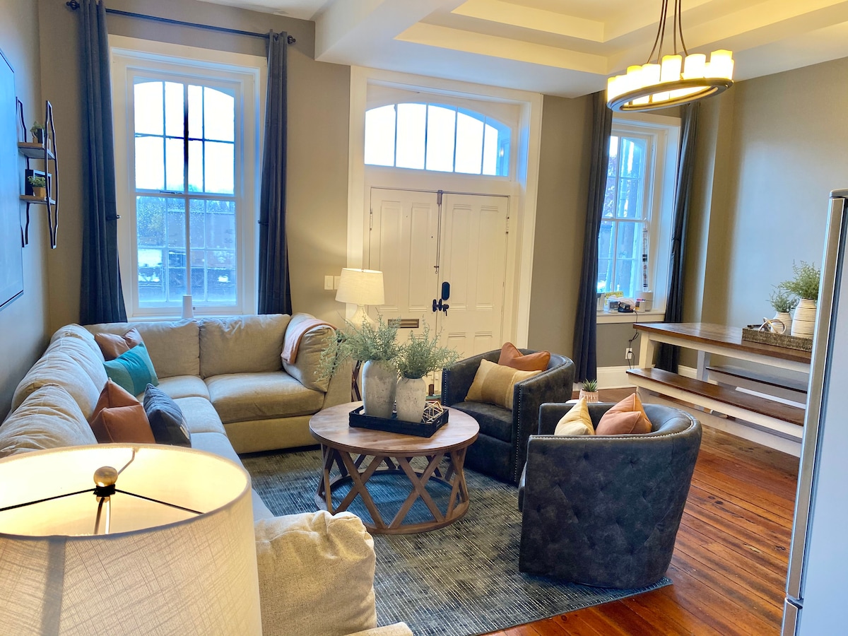 1900 के दशक की शुरुआत में हमारे देहाती फ़ार्महाउस में 3 - बेडरूम और 2 पूरे बाथरूम हैं और कुल 9 बेड (1 किंग / 6 क्वींस / 2 ट्विन्स) वाले बड़े समूहों को ठहराने की सुविधा है। कुकवेयर और बर्तनों के साथ एक पूर्ण - सेवा किचन, 55 - इन स्मार्ट टीवी वाला लिविंग रूम पहले से ही हमारे मुफ़्त, सुरक्षित वाई - फ़ाई, ऊपरी स्तर पर मेक - अप क्षेत्र, प्रवेशमार्ग क्षेत्र में वॉशर और ड्रायर, सामने के बरामदे और पूरे साल के मनोरंजन के लिए कवर किया गया बड़ा निजी बैक पैटियो।