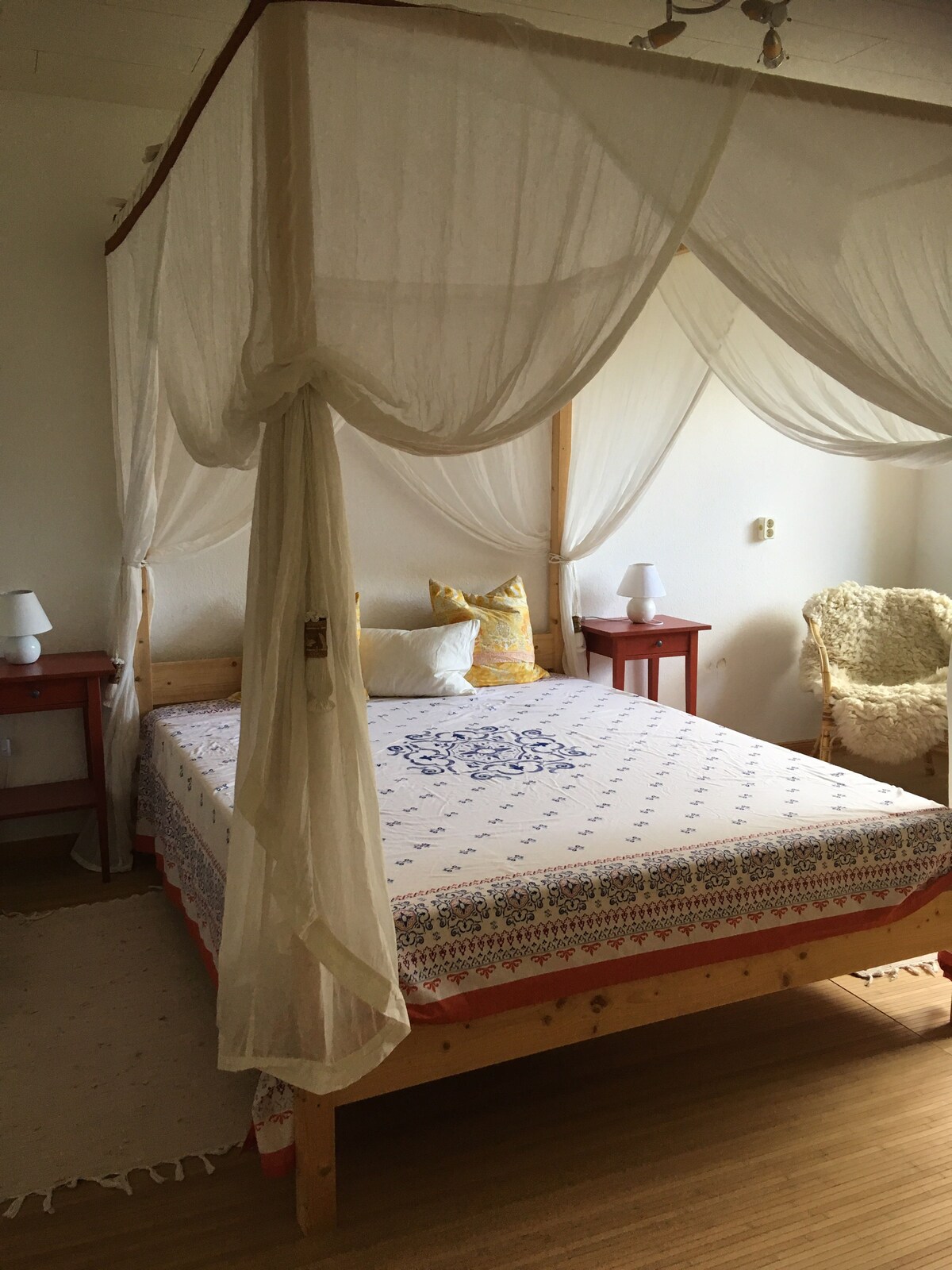 मुझे सेट अप किया गया है ताकि आप आराम और सेहत पा सकें। मेरी बड़ी खिड़की के सामने आप हरे रंग में देखते हैं... एक बड़े घास के मैदान, पेड़ और झाड़ियों पर। मैं 50 वर्षों से आसपास रहा हूं... भले ही हम अभी फैशन में हैं, मैंने बहुत अनुभव किया है... लेकिन मुझे हाल ही में पुनर्निर्मित किया गया है और दिलचस्प मेहमानों के लिए तत्पर हैं!