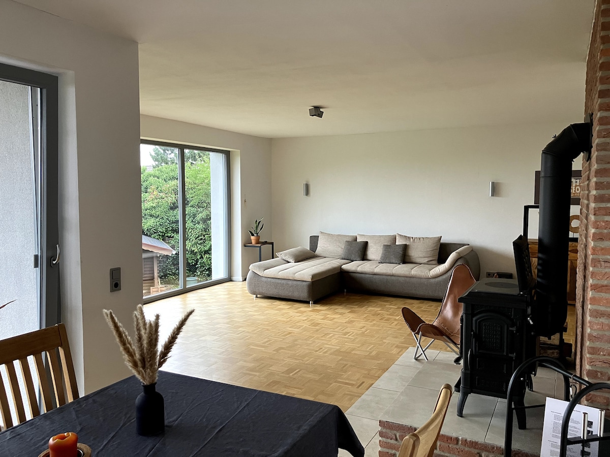 Deur मेहमान, ग्रामीण ह्यूएरबेन (शॉम्बर्ग क्षेत्र) में, मैं लगभग 1000 वर्गमीटर के बगीचे के साथ एक अलग 140 वर्गमीटर का घर ऑफ़र करता हूँ। एक कुत्ते के प्रेमी/मालिक के रूप में, बगीचा पूरी तरह से बाड़ लगा हुआ है, इसलिए आप छत पर आराम कर सकते हैं या 5 मिनट की पैदल दूरी पर जंगल में टहलने का आनंद ले सकते हैं। अगर मौसम साथ नहीं चलता है, तो फ़ायरप्लेस और खुली रसोई आपको आरामदायक घंटों के लिए आमंत्रित करती है। ... आत्मा को डब करने दें और रोज़मर्रा की ज़िंदगी में तनाव से बचें:) सादर, लार्स