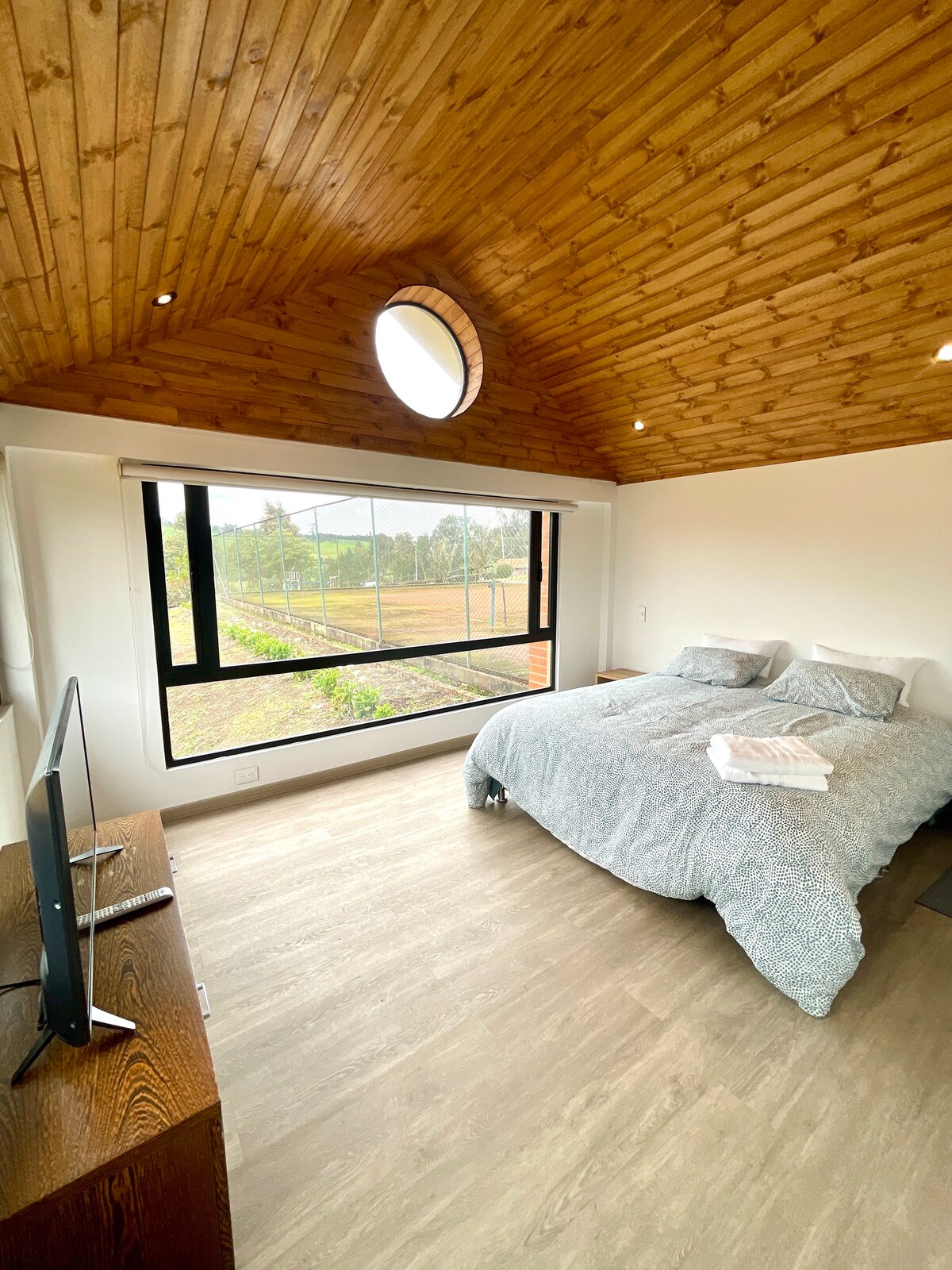 Encuentra un lugar tranquilo y reconfortante a solo 80 km de Bogotá por la salida norte, a 10 minutos de la bella represa del Sisga y 500 metros de las piscinas termales los volcanes con vías completamente pavimentadas. Conéctate con hermosos paisajes y sonidos de la naturaleza mientras meditas, paseas con tu mascota, caminas, trotas o ruedas en bicicleta. ¡Escápate y recárgate de energía!