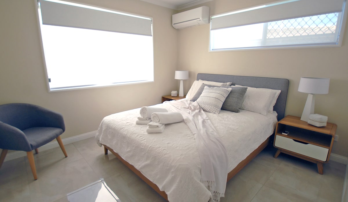 प्रति रात किराए पर 5% की छूट – नीचे देखें + सफ़ाई शुल्क पर 50% की छूट – नीचे देखें समकालीन बीचफ़्रंट गेस्टहाउस: • दो बेडरूम (अधिकतम 4 मेहमान) • बाथरूम • ओपन प्लान लिविंग और किचन • निजी बरामदा • खुद की लॉन्ड्री सुविधाओं में शामिल हैं: • आधुनिक और पूरी तरह से आत्मनिर्भर • Netflix वगैरह के साथ स्मार्ट टीवी • मुफ़्त असीमित तेज़ वाईफ़ाई • डक्टेड एयरकॉन • गैस बार्बेक्यू • बीच के करीब