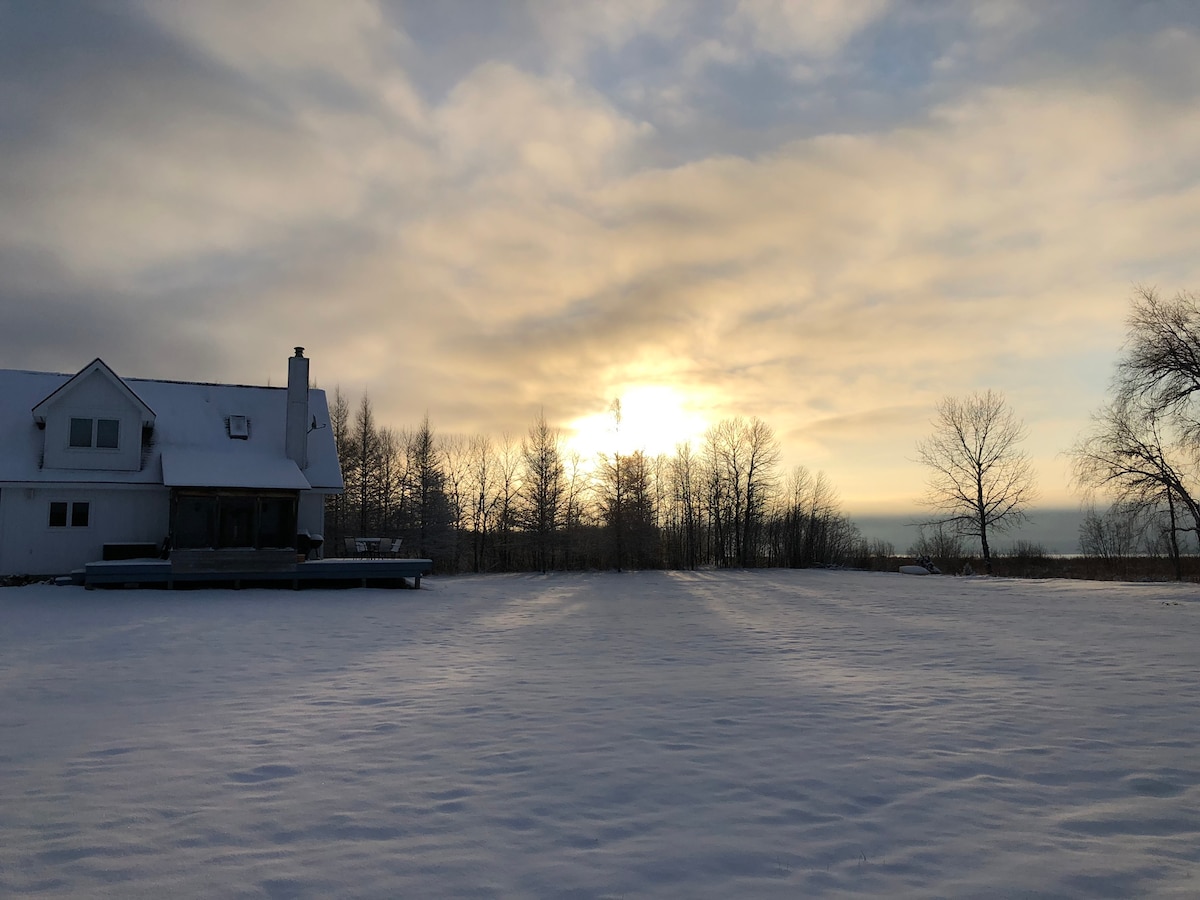 भोम्बे बीच हाउस... एक या दो लोगों के लिए एकदम सही ऊपरी प्रायद्वीप रिट्रीट। सुंदर सेंट इग्नेस में लेक हूरॉन के रेतीले समुद्र तटों पर बसा यह मनमोहक एक बेडरूम कॉटेज ऊपरी प्रायद्वीप की ओर से ऑफ़र की जाने वाली सभी चीज़ों के लिए एक शानदार होम - बेस है। इस घर में झील के साथ - साथ दो निजी डेक, एक ग्रिल, फ़ायर पिट और तैराकी, कायाकिंग या बस आराम करने के लिए वह सुंदर समुद्र तट है। झील के ऊपर सूर्योदय बस लुभावने हैं! 3 - दिन ठहरने की जगहों का अब स्वागत है। .